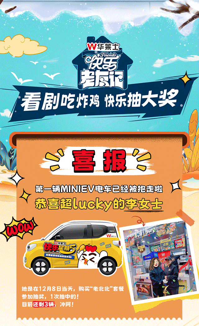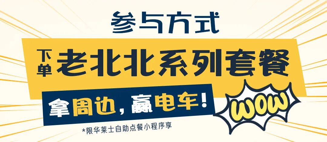 注意事项:本次抽奖活动只针对在华莱士自助点餐小程序下单“快乐老北北”系列套餐的用户,对于任何通过不正当手段(包括但不限于抽奖后退单、作弊、通过机器行为等方式恶意刷单)参加活动获取权益或者不符合活动规则的行为,我们将在不事先通知的前提下取消该用户参与活动的资格和已获得的相应权益。华莱士在法律允许范围内可对活动细则进行适当调整,活动最终解释权归华莱士所有;若因不可抗力因素致使本活动因故无法进行,主办方将在法律允许范围内取消、终止、修改或暂停本活动,且不承担任何违约或赔偿责任,尽管有上述约定,主办方将采取合理行动积极促使活动恢复正常。如有疑问,可联系电话: 4008899096。