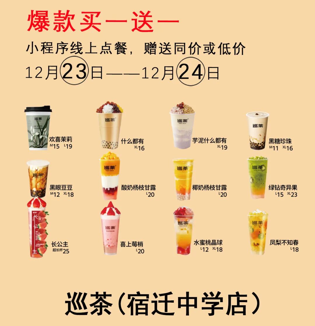 摘要:巡茶(宿迁中学店)装修升级完成!12月23日至24日,爆款买一送一!