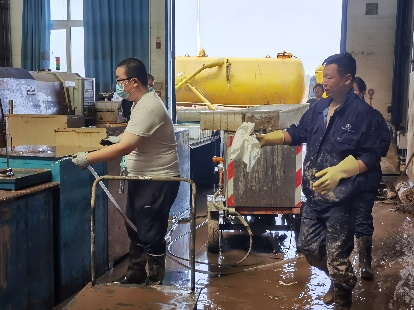 厂房积水让科研生产设施遭受了不同程度的损失,许多设备受灾严重,设备抢救维修专家组第一时间会同厂家进行设备评估,迅速开展设备拆解和返厂等抢修维护工作。