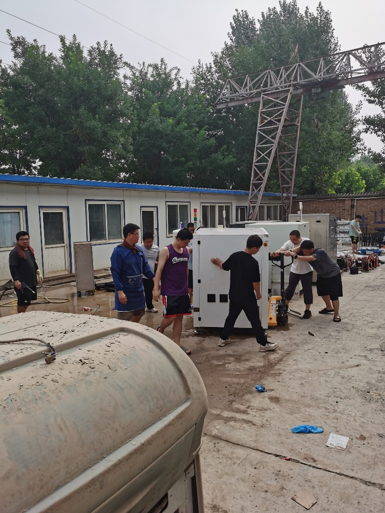 恢复生产,电力尤为关键,动力抢修职工第一时间对变压器、配电室、配电柜和配电箱进行排水、检测和评估,并采取临时发电措施进行现场照明供应。