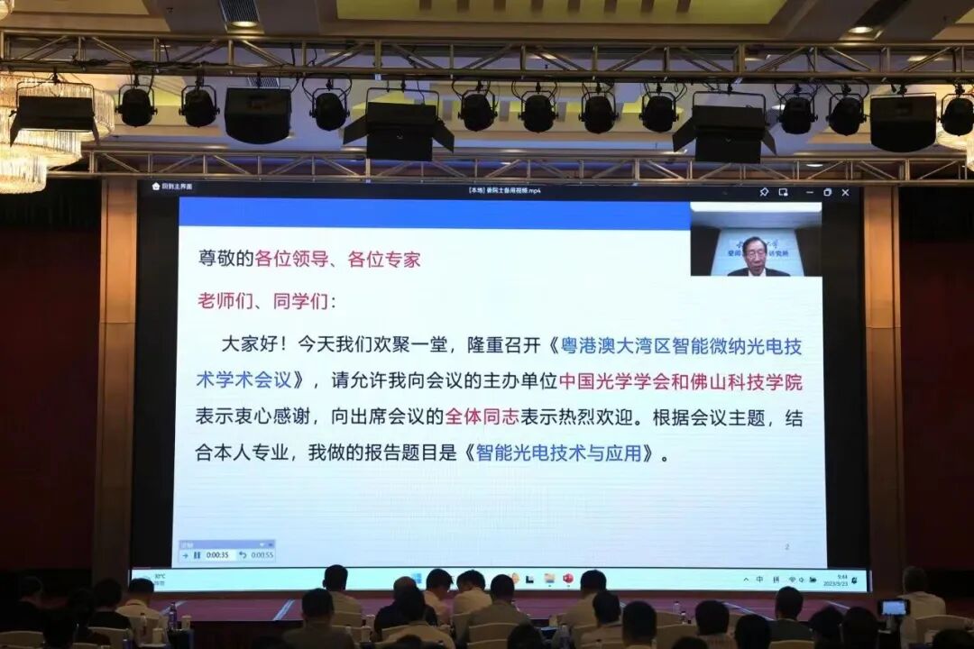 9月23日上午,2023粤港澳大湾区智能微纳光电技术学术会议在佛山开幕。中国科学院院士、中国光学学会理事长顾瑛,佛山市科技局局长薛立伟,佛山科学技术学院副校长曾新安教授出席大会开幕式并致辞。中国工程院院士、长春理工大学原校长姜会林,中国工程院院士、中国科学院光电技术研究所所长罗先刚,香港城市大学蔡定平教授,广东省光学学会理事长、暨南大学纳米光子学研究院院长李宝军教授、苏州大学陈林森教授出席大会开幕式并作报告。来自中国内地、香港、澳门及新加坡等地的350余名专家学者、企业家、师生,共聚粤港澳大湾区极点城市、全国重要制造业基地、岭南历史文化名城——佛山,分享在微纳光电技术领域的新成果、新发现,探讨光电技术发展前沿,激发科技创新力量,夯实基础研究,助力粤港澳大湾区光电产业高质量发展。