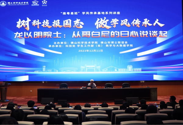 12月11日,“院士进校园——名家大师面对面”之“南粤易班”学风传承基地系列讲座首场活动在仙溪校区举办。中国科学院院士、发展中国家科学院院士、南开大学陈省身数学研究所教授龙以明作了主题为“从哥白尼的日心说谈起”的学术报告。他从地心说谈到日心说,并解释哥白尼发展日心说的原因和相关的科学发展,帮助在场师生建立对科学技术的学习、探索和创新的兴趣,走进奇妙无比的数学世界。龙以明院士希望在座师生在学习科学知识和从事科学研究时,要遵循正确的方法:一是注重建立扎实的基础;二是要培养和保持好奇心、求知欲;三是学会发现问题和现有理论的不足,特别是重大欠缺;四是要建立新方法、新理论,解决问题;五是基于这些新方法、新理论进一步推动对相关课题、自然规律、乃至对客观世界的更多理解,进而推进科学技术和社会的发展。