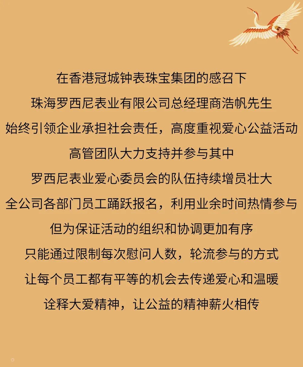 摘要:2024珠海罗西尼表业元旦爱心敬老活动