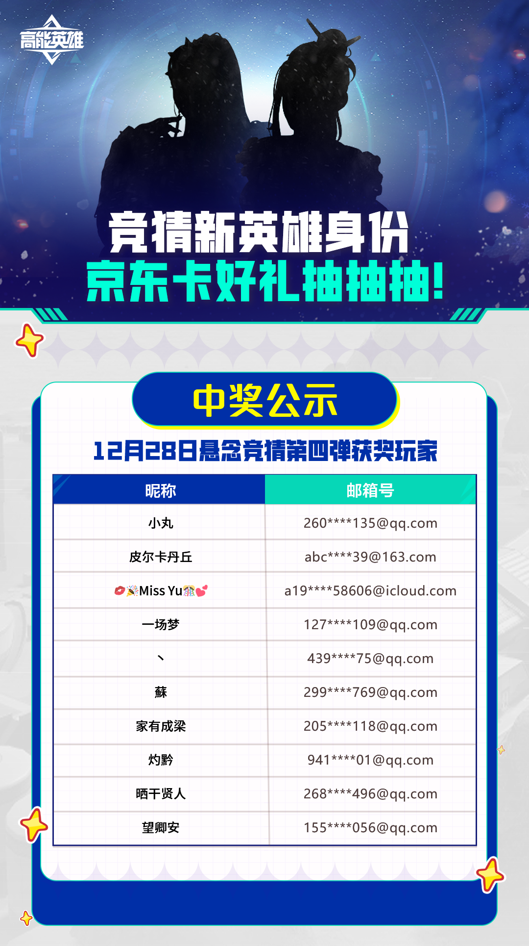 12月28日的「竞猜第四弹」活动中奖名单已出炉,快来看看有没有你的名字吧~