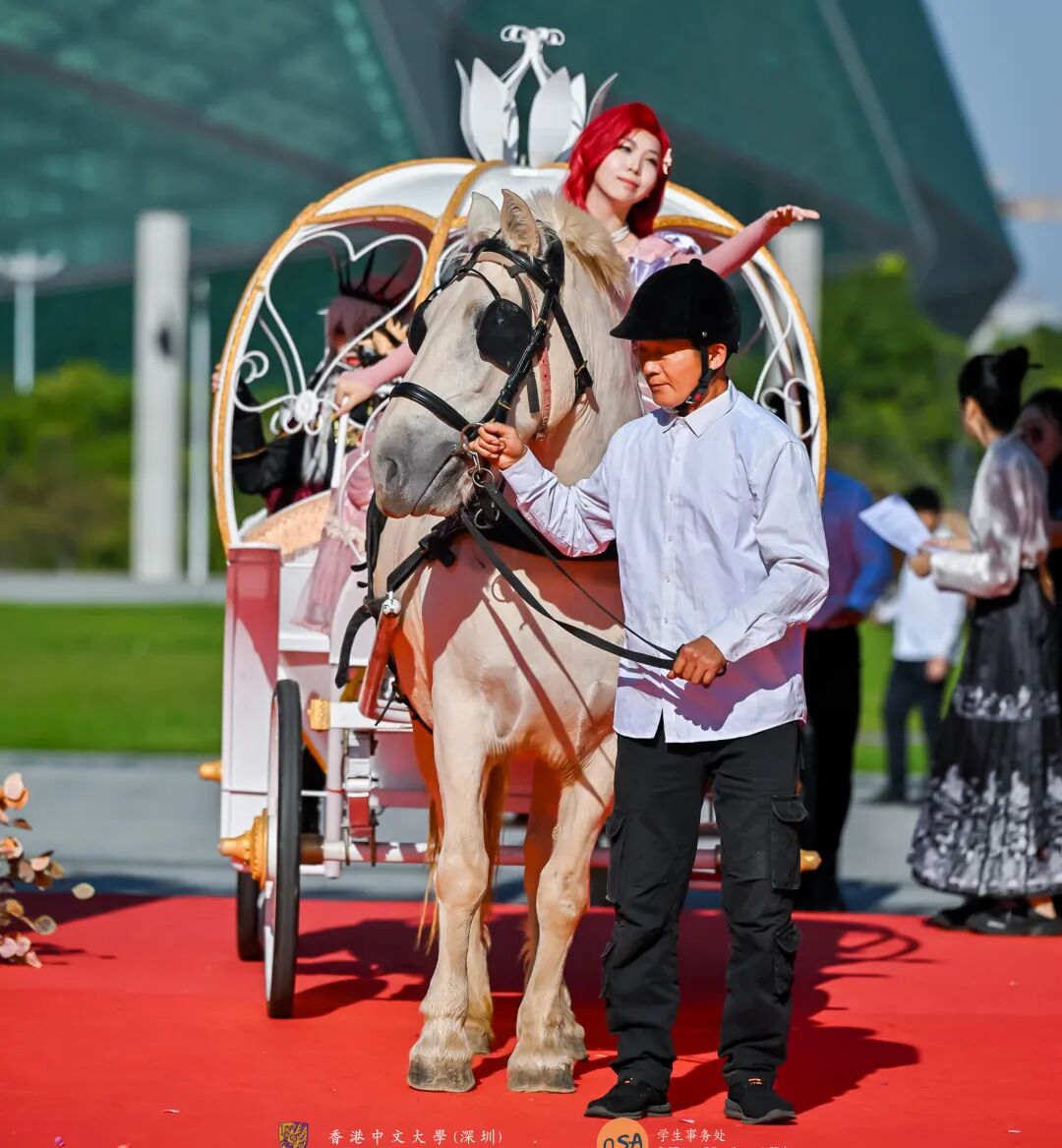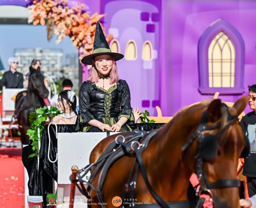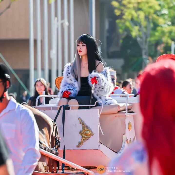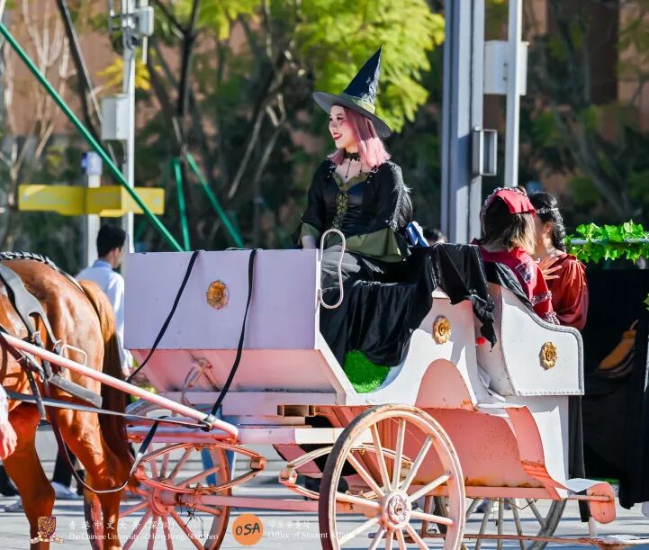 继去年马车回归之后,今年马车巡游再度亮相!酷滑社和漫研社在城门打开后首发登场,各书院方阵紧随其后,逸夫书院-“逸”路同行、学勤书院-学勤PUNKPINK、思廷书院-奇缪思乐园、祥波书院-鸥像练习生、道扬书院-小机LING鬼、厚含书院-密涅瓦超级派,第七书院-感恩七重奏,教职工方阵-麻辣鲜师相继登场,大家纷纷扮演童话世界的各经典人物,尽情地展现着自己的魅力。
