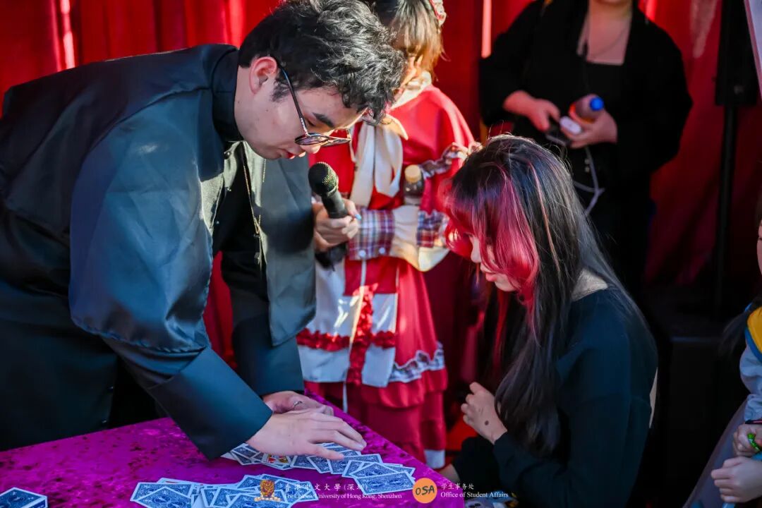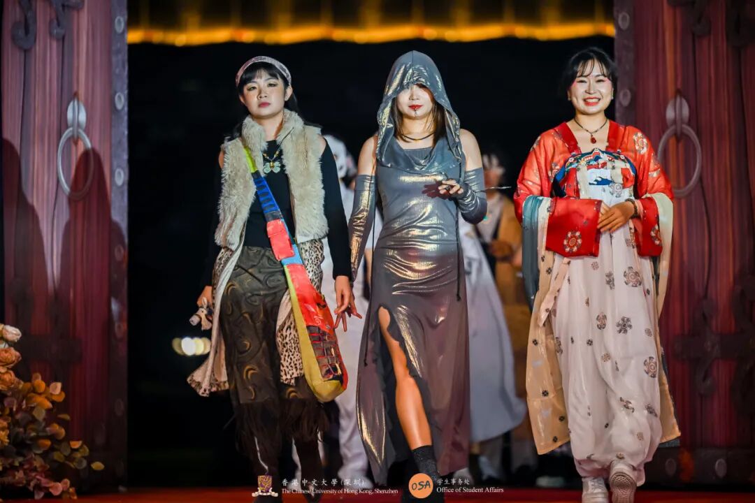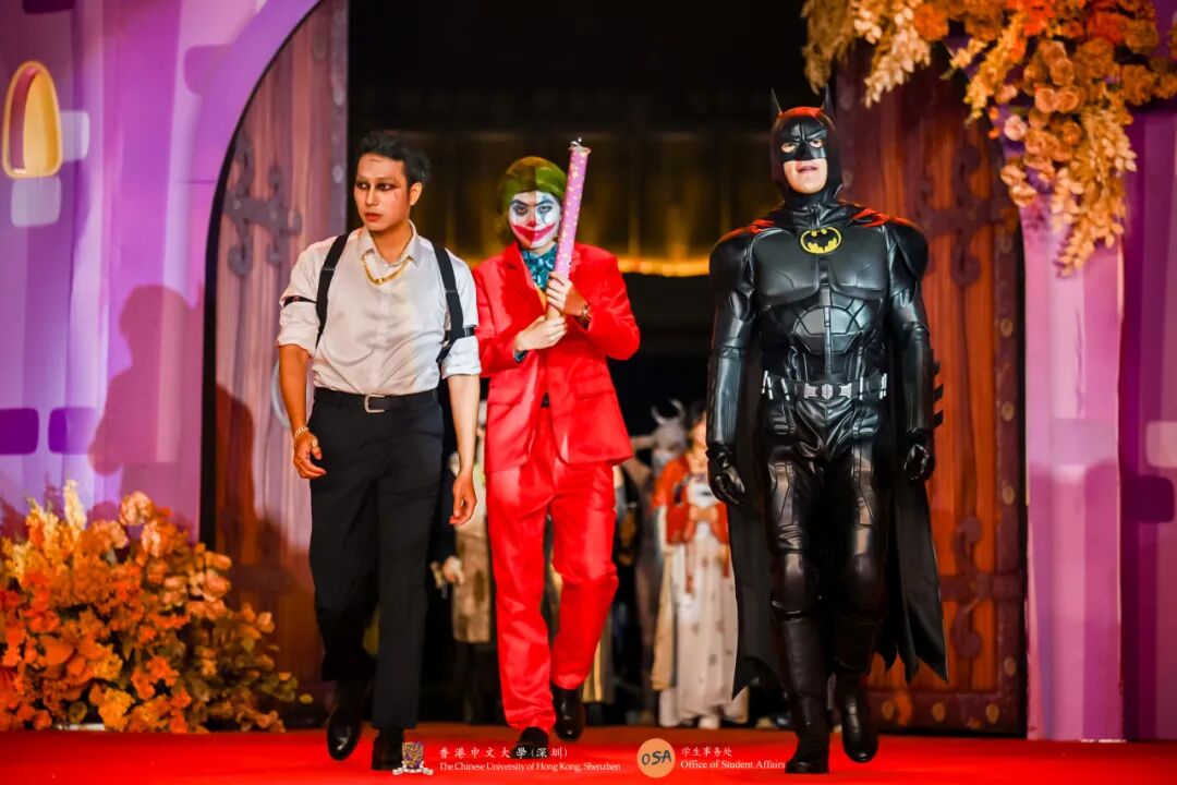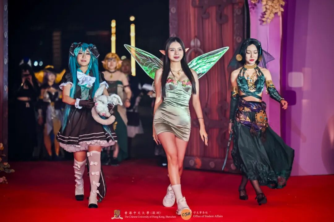 精舞团国际部的同学们带来了精彩的开场舞表演,瞬间点燃了全场氛围。校园内游荡的同学们聚集在一起,开启了欢乐“Show Time”。这不仅仅是一场花式走秀,更是一个充满创意和狂欢的舞台。在走秀的时候,coser们不仅仅是在展示自己的才华,更是与大家互动。有的coser发糖,悠然洒下满满的甜蜜,有的摆出他们cos的人物的经典姿势,和大家集邮合照。同学们仿佛将动漫、电影、网络知名角色带到了现实。
