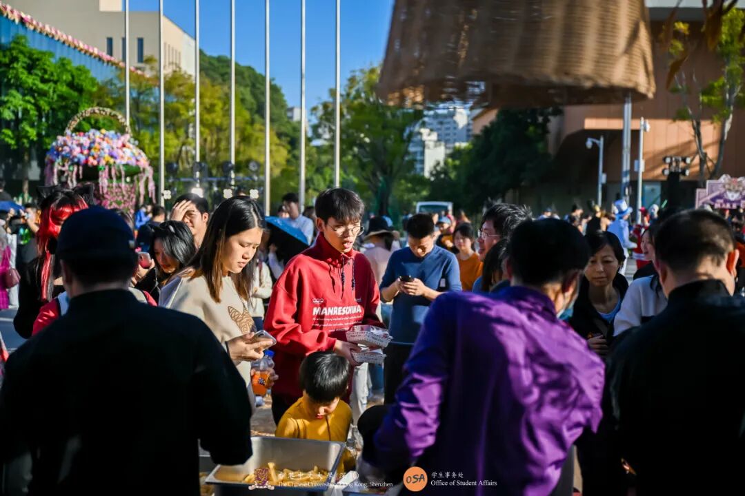 在热闹的人群中,一丝或甜腻或火辣的食物香气,裹挟着热气,向四周蔓延。鲜美的烤鸡,酥脆的薯条,甜糯的南瓜派……一系列节日特供美食佳肴广受师生欢迎,在秋意正浓的日子里,传递一份又一份温暖。