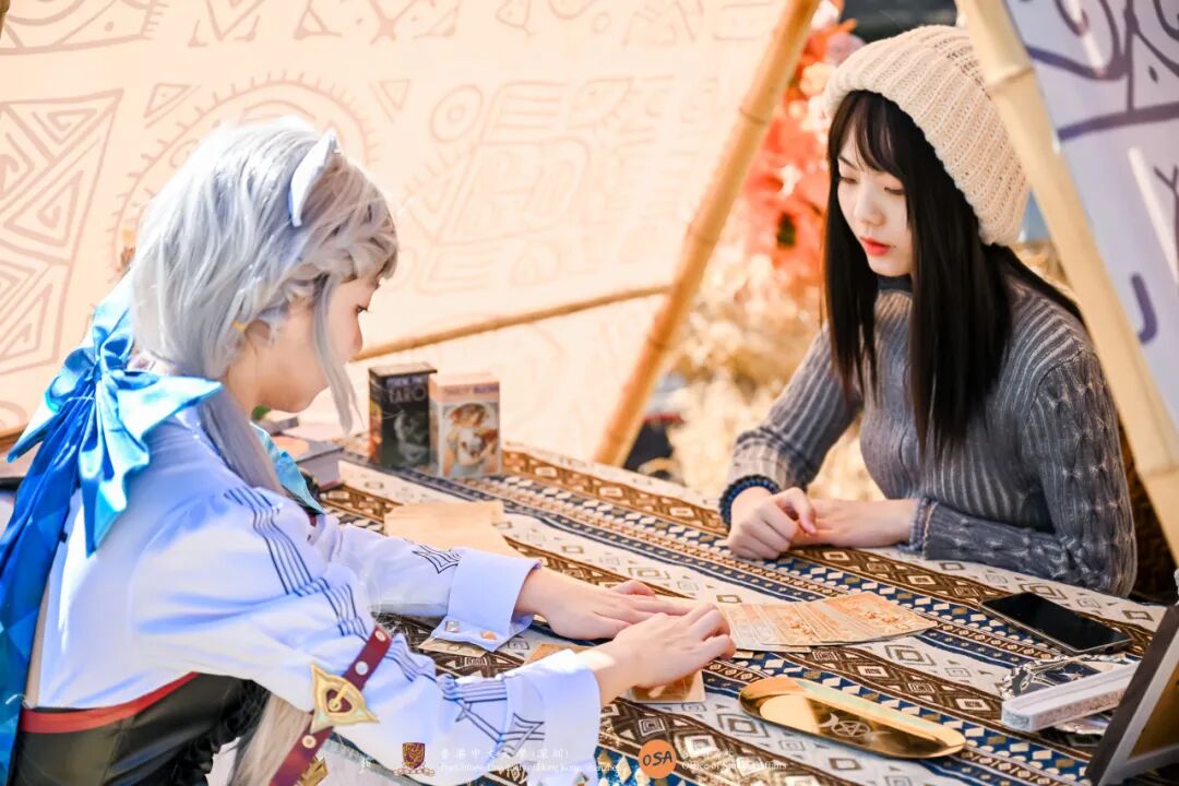 在绮梦剧场的魔法舞台上,同学们沐浴在微弱的射灯下,流光溢彩,如入梦境。一场由凤凰漫研社呈现的动漫高手挑战在“尽头之海”摊位上拉开帷幕,仿佛是一趟奇幻冒险。与往日相比,这里更像一座充满神秘魔力的城堡,吸引着来自四方的动漫爱好者。各位知识丰富的二次元们聚集在这里,探究动漫世界的无尽奥秘。