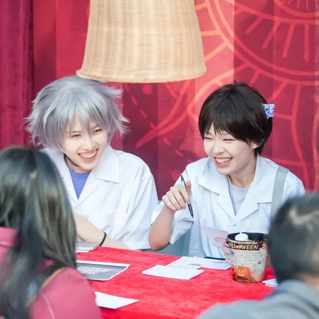 在狂欢的氛围中,coser们与观众进行互动,有的发起糖果,传递着温馨的笑容;有的摆出角色的经典姿势,勾勒出角色的魅力;更有的与同学们合影,将这份欢乐分享给每一个在场的人。这不仅是一场cosplay表演,更是一场人与人之间真挚交流的美好时刻。