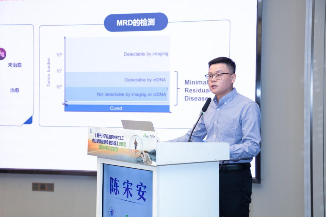 此外,作为预测早期复发风险的重要分子标志物,MRD检测在NSCLC复发管理中具有重要的价值。燃石医学陈宋安博士分享了《MRD在NSCLC的临床价值及进展》,对MRD在NSCLC不同阶段中的应用现状、价值以及未来应用的展望进行了充分介绍。