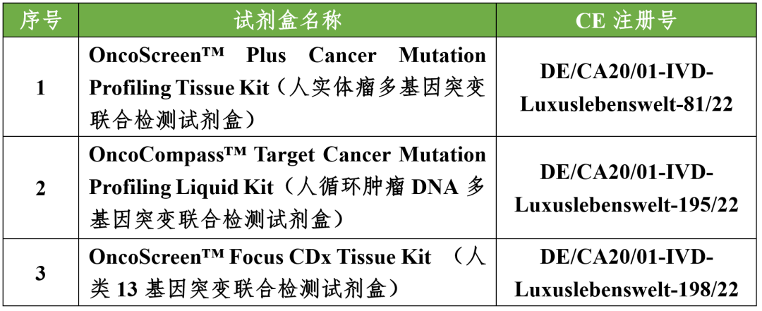 2022年5月5日,燃石医学(纳斯达克代码:BNR)宣布,公司自主研发的三款肿瘤二代测序(next generation sequencing,以下简称“NGS”)检测试剂盒“OncoScreen™ Plus Cancer Mutation Profiling Tissue Kit(人实体瘤多基因突变联合检测试剂盒)”、“OncoCompass™ Target Cancer Mutation Profiling Liquid Kit(人循环肿瘤DNA多基因突变联合检测试剂盒)”和“OncoScreen™ Focus CDx Tissue Kit(人类13基因突变联合检测试剂盒)”均已获得欧盟CE资质,将进一步助力公司全球化商业布局和合规化进程。