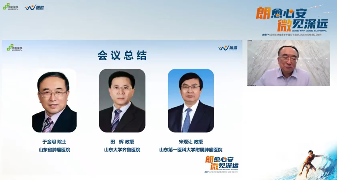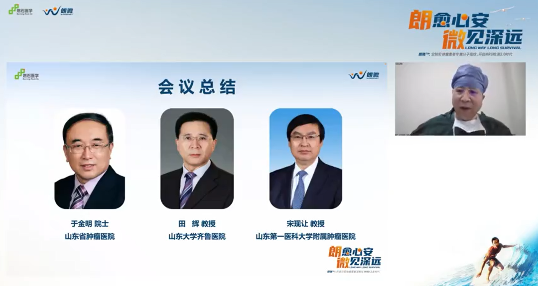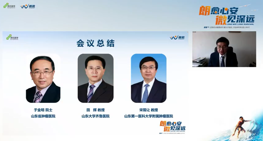 最后,针对各位专家就MRD在临床应用中提出的比较现实的问题,于金明院士、田辉教授、宋现让教授总结表示,MRD未来能否真正落地临床实践,有赖于未来更多临床专家通过多中心的临床试验,不断积累更加明确的证据,同时也希望朗微™将来能够更好地助力临床,更好地帮助指导肿瘤的精准化和个体化治疗,覆盖更多患者实现生存获益。