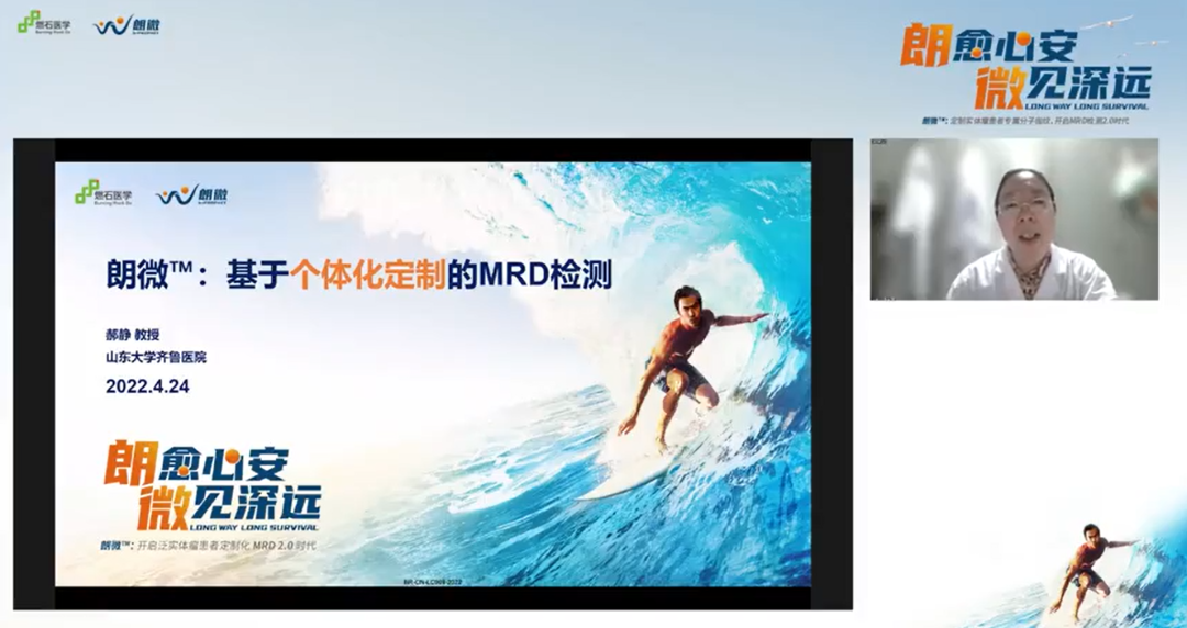 4月24日,燃石医学“朗愈心安,微见深远”朗微™山东上市会圆满召开。众多来自山东临床及病理的重磅专家齐聚线上,共同见证燃石自主研发的实体瘤微小残留病灶(Minimal Residual Disease / Molecular Residual Disease, 以下简称“MRD”)检测产品朗微™正式落地山东发布,并就MRD临床价值与进展、患者获益表现、MRD检测策略及规范等多个热门话题展开主题演讲及热烈讨论,共同迎接MRD检测2.0新篇章的到来。
