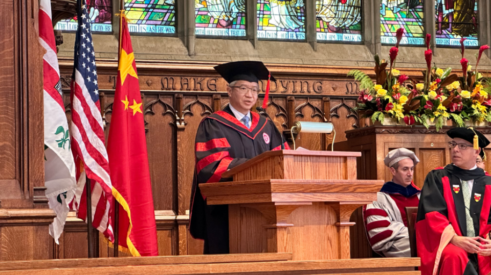 毕业典礼现场,圣路易斯华盛顿大学奥林商学院院长Mike Mazzeo发表致辞,祝贺学员们在这段时光中变得更加优秀,同时也祝愿学员们“在面对未来的挑战时也依旧保持乐观与敏锐”,这也是25年来他面对工作时所怀抱的信念。