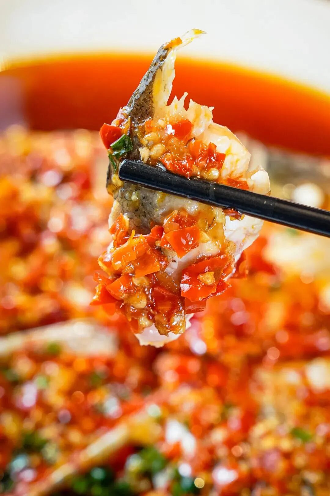新鲜滑嫩的鱼头搭配入味、脆辣的剁椒,