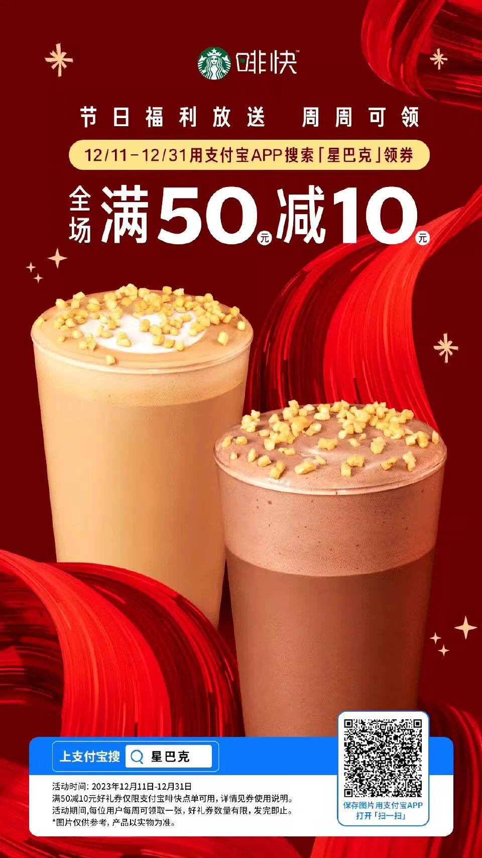 支付宝啡快点单50减10