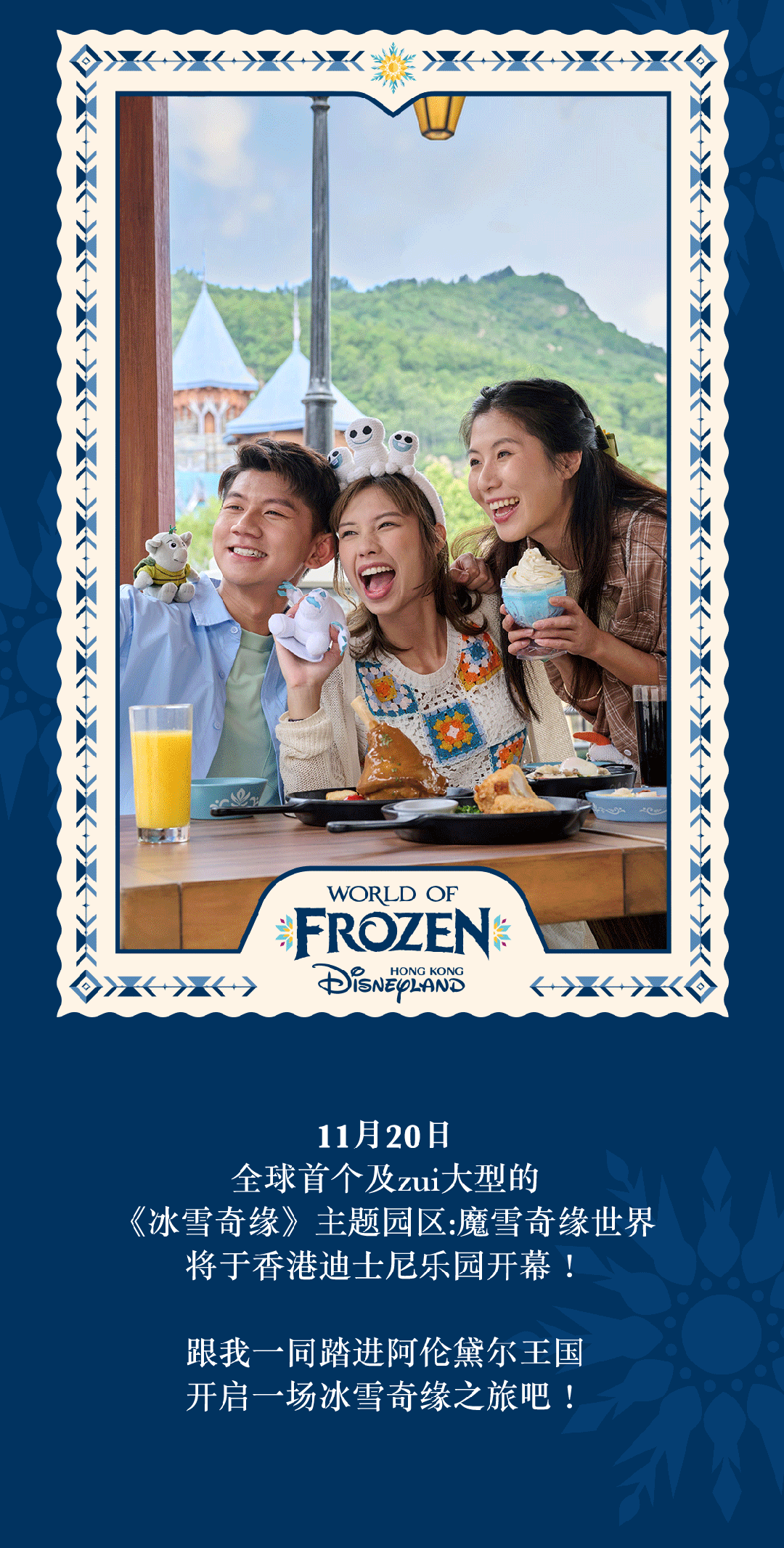 迪士尼全球首个及最大型的《冰雪奇缘》主题园区一一魔雪奇缘世界,将于11月20日于香港迪士尼乐园开幕啦!