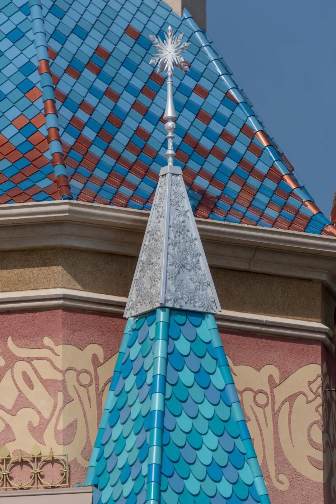 焕然一新的奇妙梦想城堡,由艾莎的冰雪魔法点亮!安娜与艾莎的城塔,以浅蓝色石瓦和一颗闪着亮光的立体雪花作为设计,大家拍照打卡时可以细心留意哦~香港迪士尼乐园更推出了全新《冰雪奇缘》主题的充电宝,让你无虑展开奇妙旅程!
