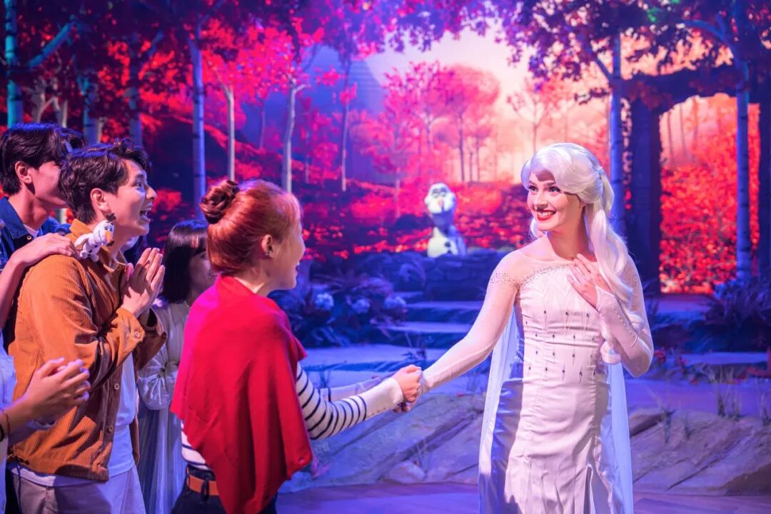 这里采用了华特迪士尼幻想工程先进技术Audio-Animatronics®所研发的发声机械人,安娜、艾莎、克斯托夫像真人一样和大家面对面唱歌,仿佛直接进到电影里,体验感直接拉满!