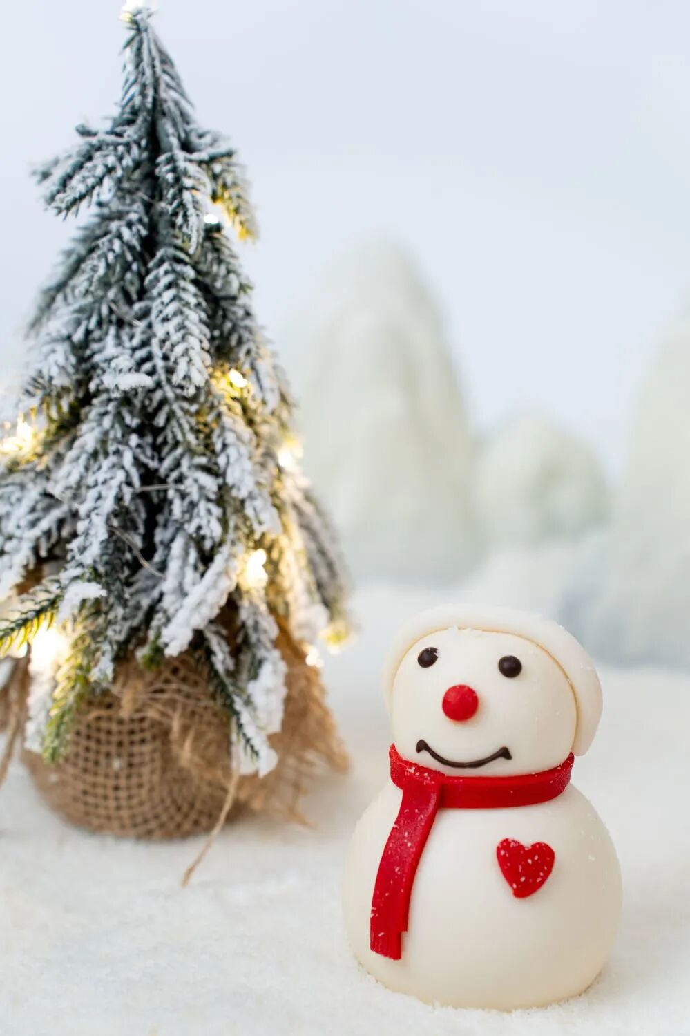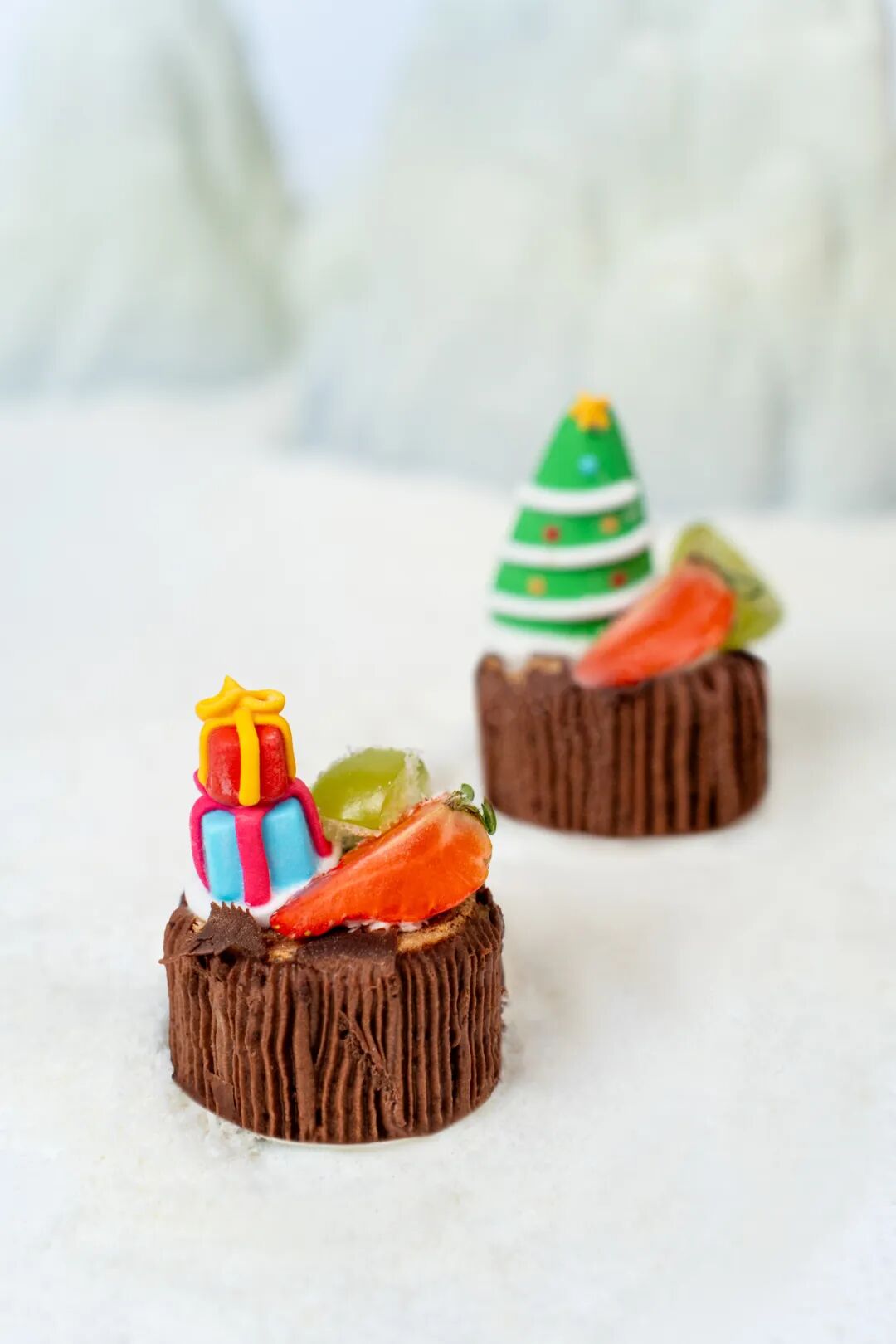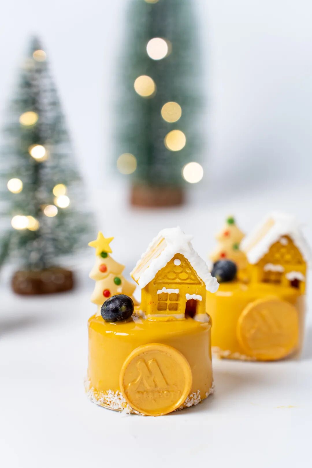 可爱的焦糖太妃蛋糕上点缀着圣诞元素