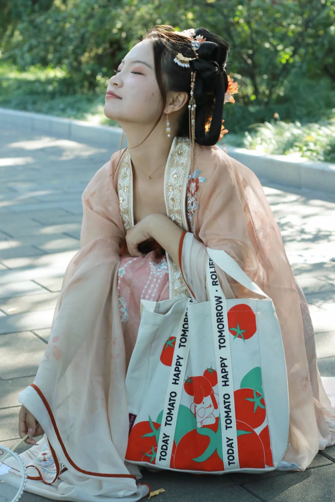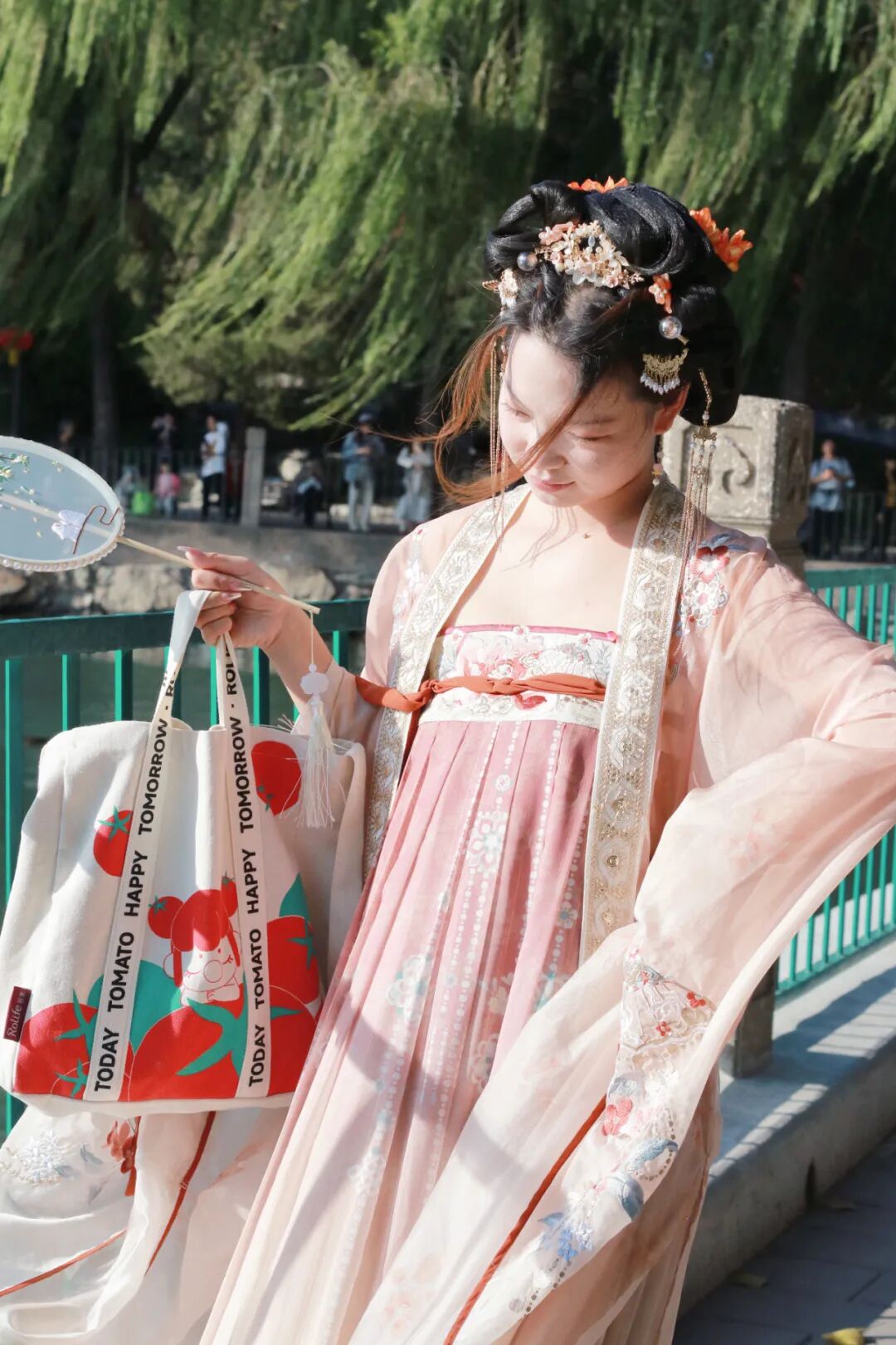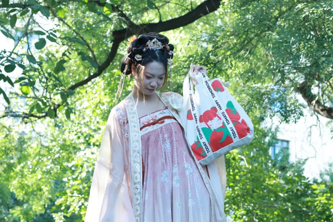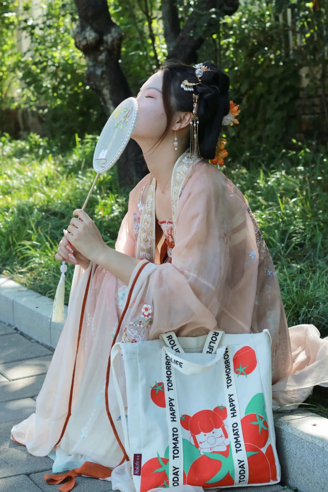 古风囡囡包搭配汉服逛公园