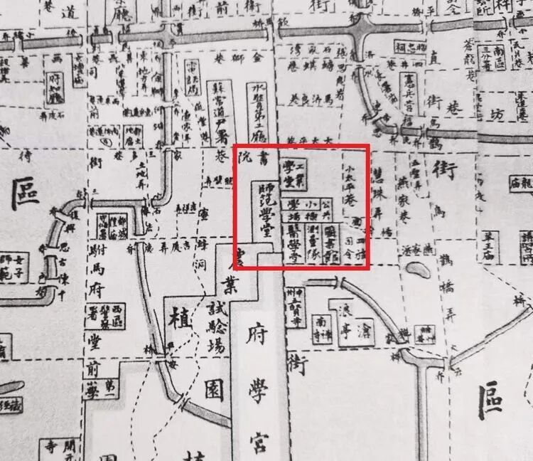 △《江苏师范学堂沿革记要》明确表明1905年4月于三元坊本部东侧建公共操场,1905年8月在操场东北建附小,据1910年《苏州城区图》显示,附小位置为今苏州中学东校区所在地。