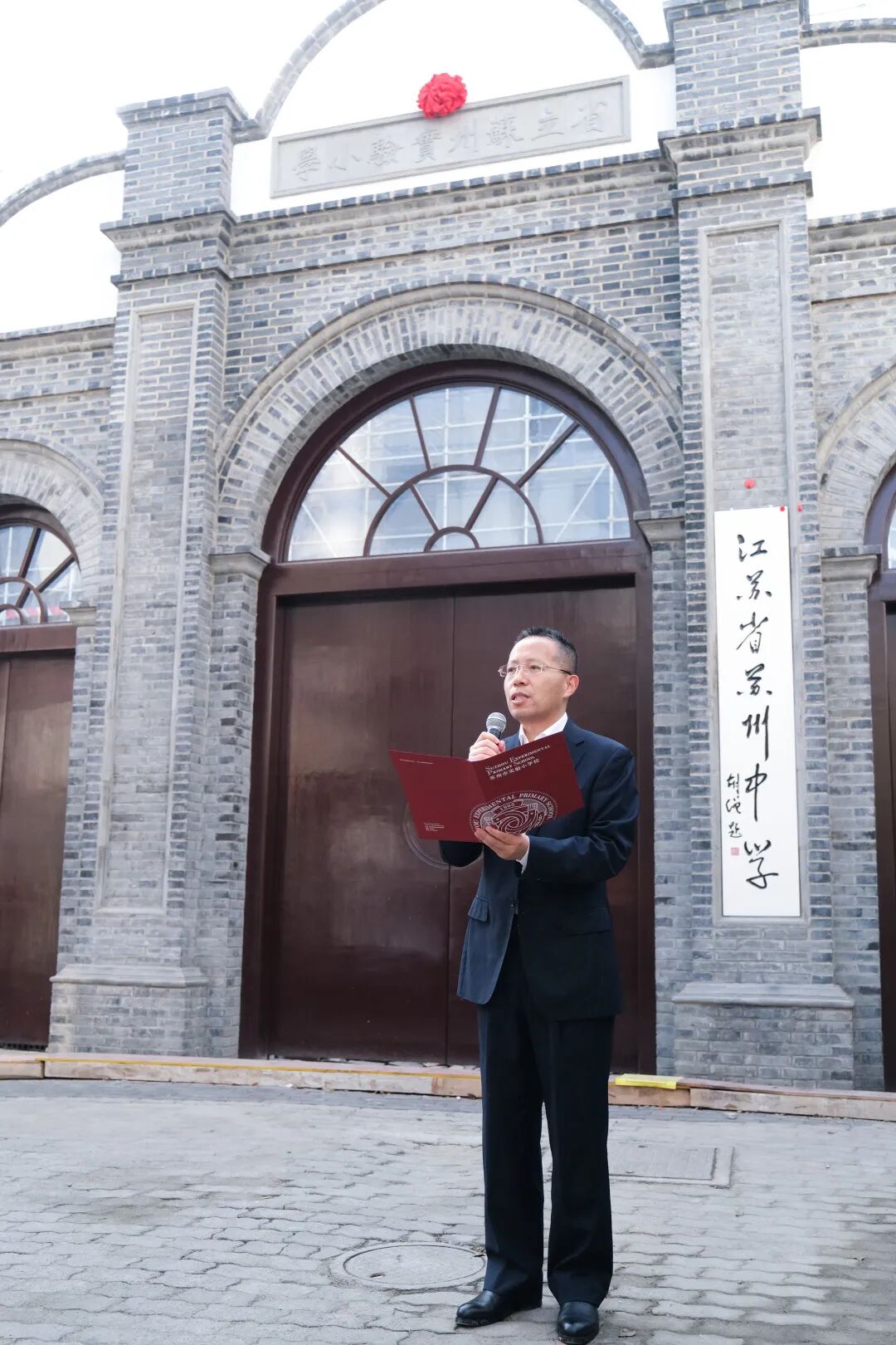 苏州中学党委书记卫新由恢复实验小学门楼的建筑小品,将此次合作定位为回应历史根脉、回馈国家需要、回归教育初心,人才培养不应只着眼于升学和招生,更应着眼于人的发展和教育养成,这是国家的需要,也是现实的挑战,希望两校合作能提供新的方案。