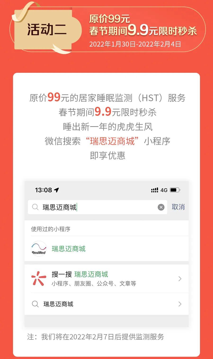 居家睡眠监测(HST)9.9元秒杀