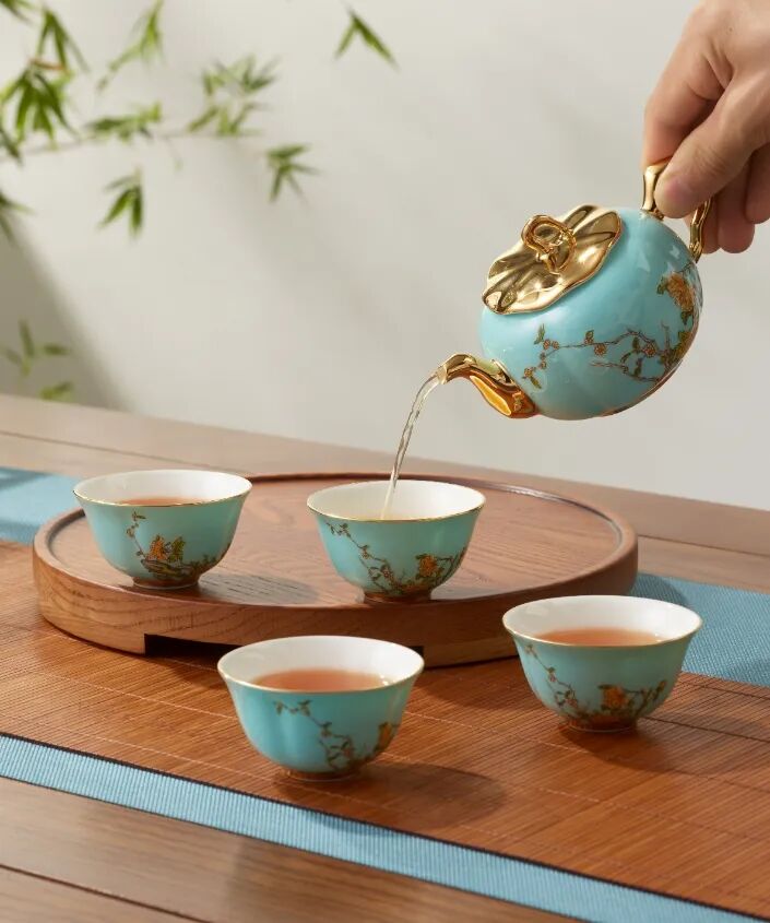 ▲西湖蓝4头茶杯碟¥798,折后价¥638