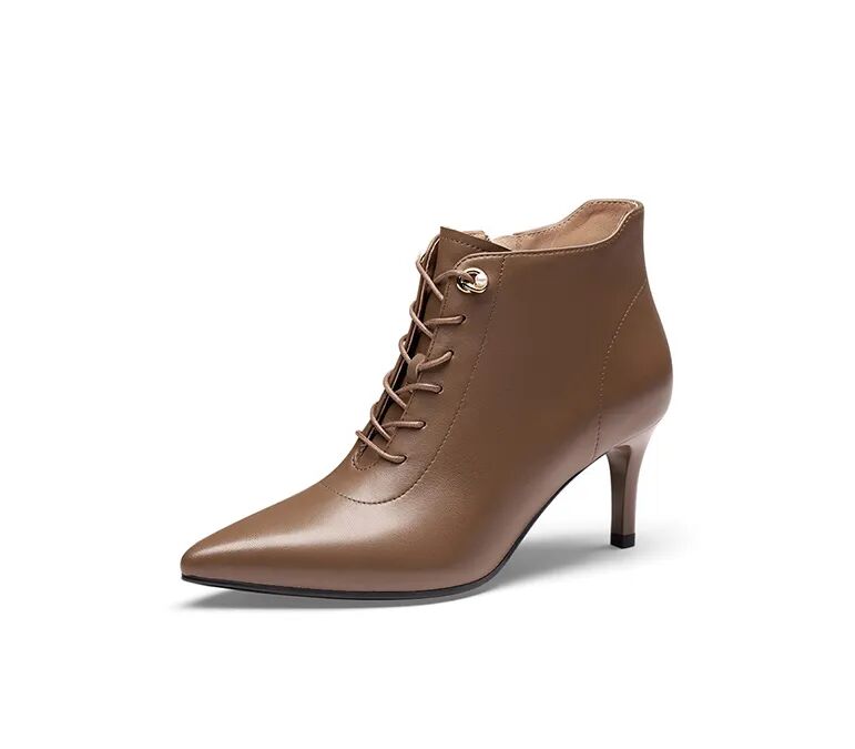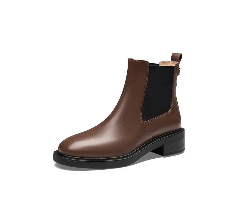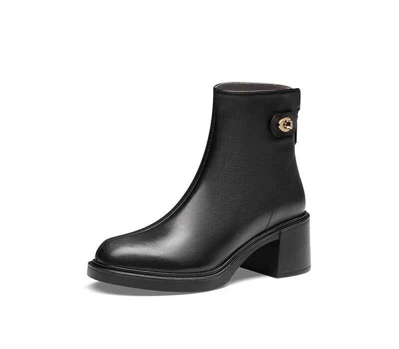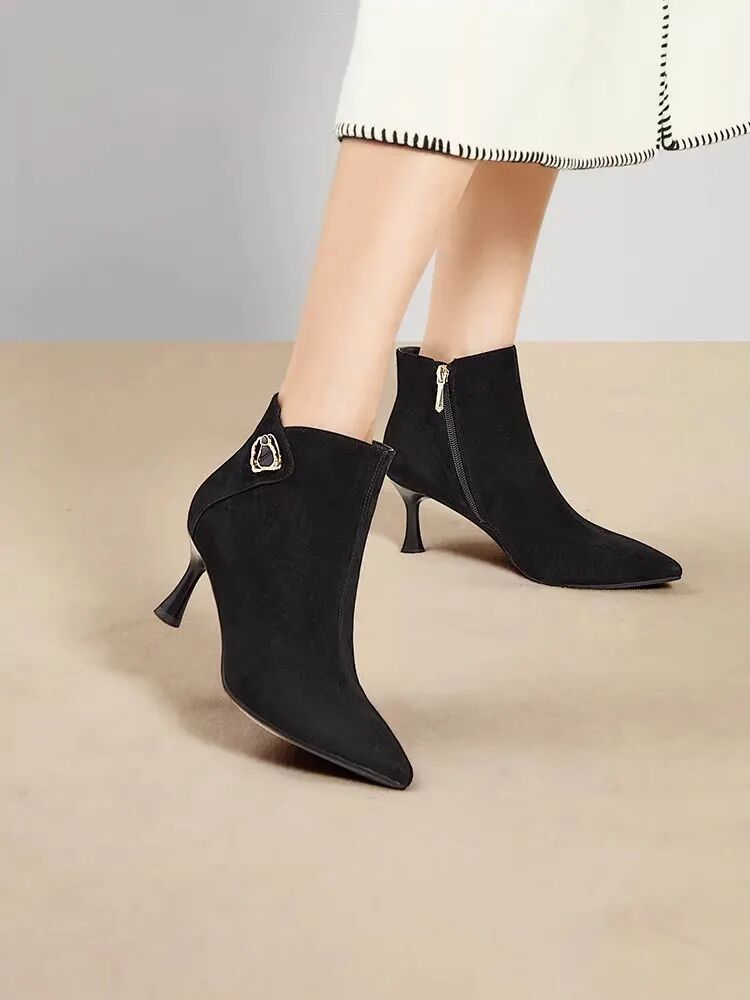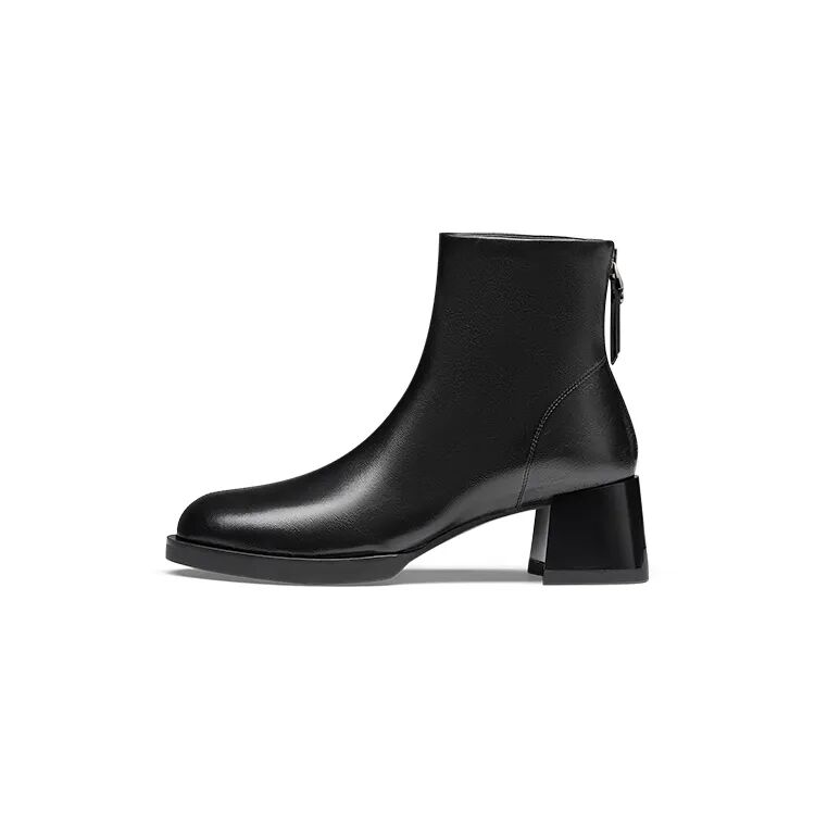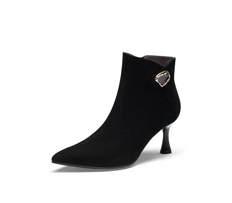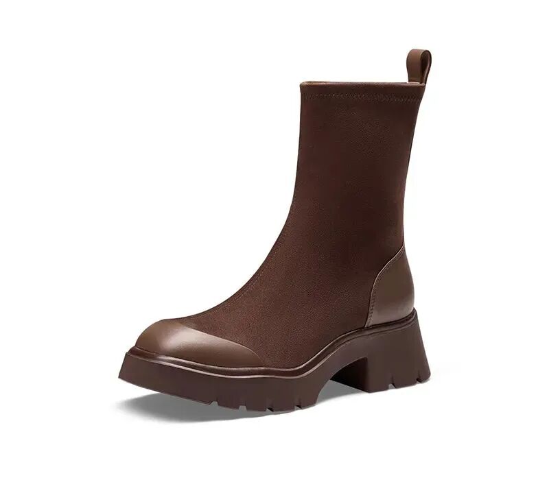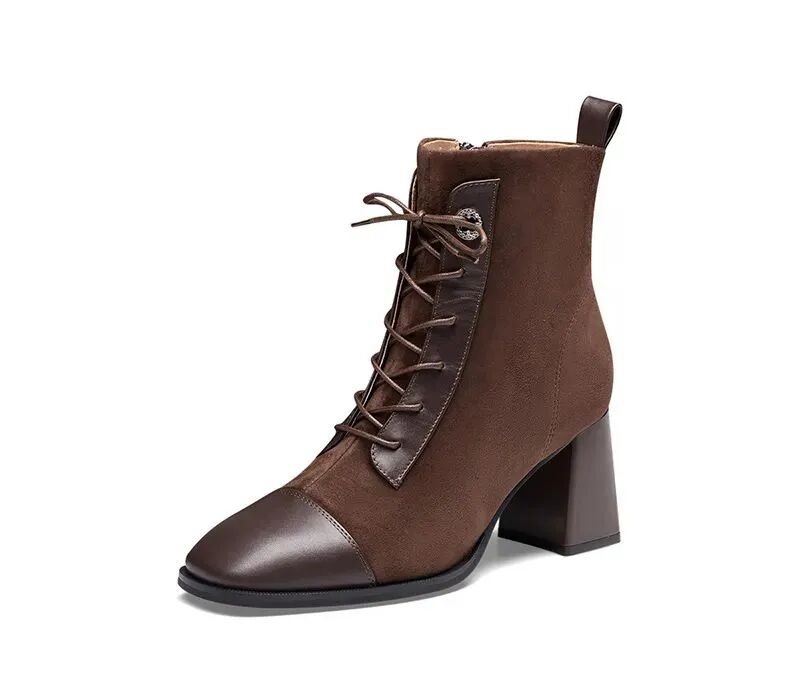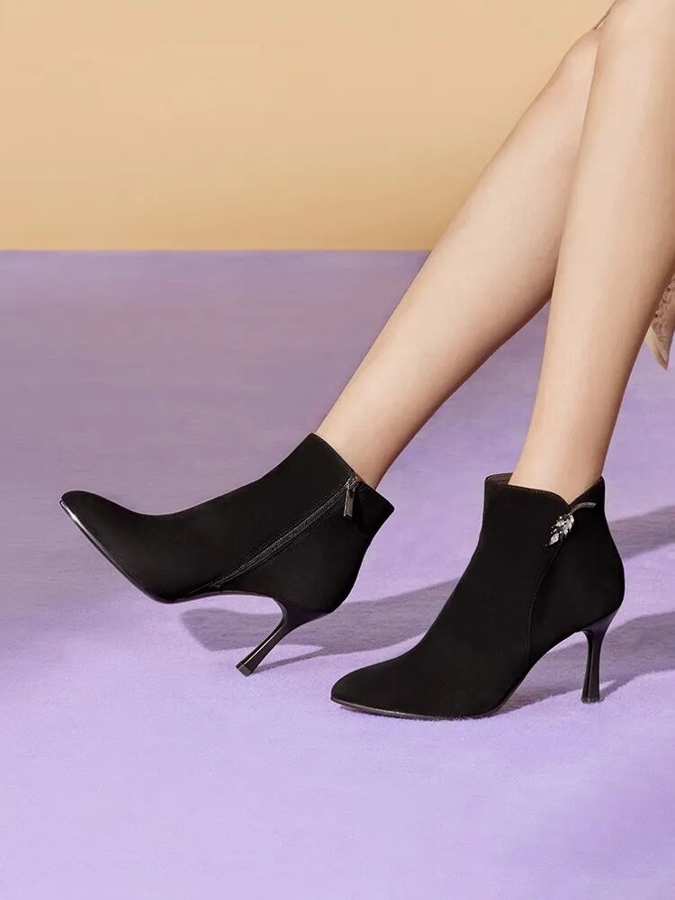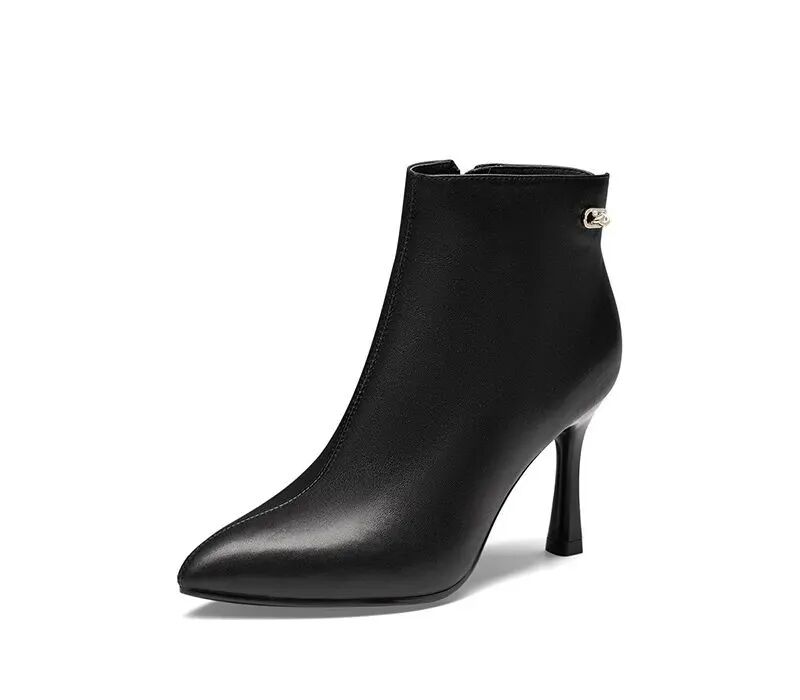 ▲牛皮粗跟高跟靴弹力短靴¥1799,折后价¥899