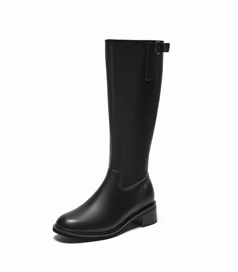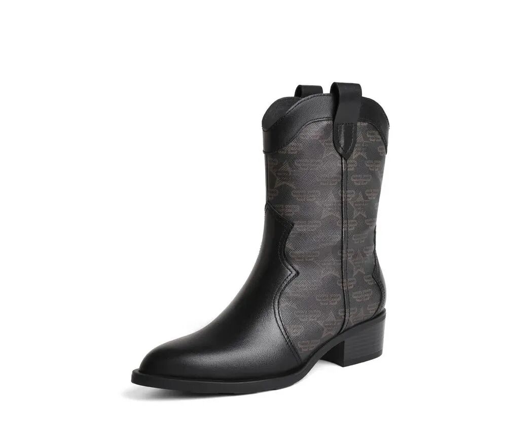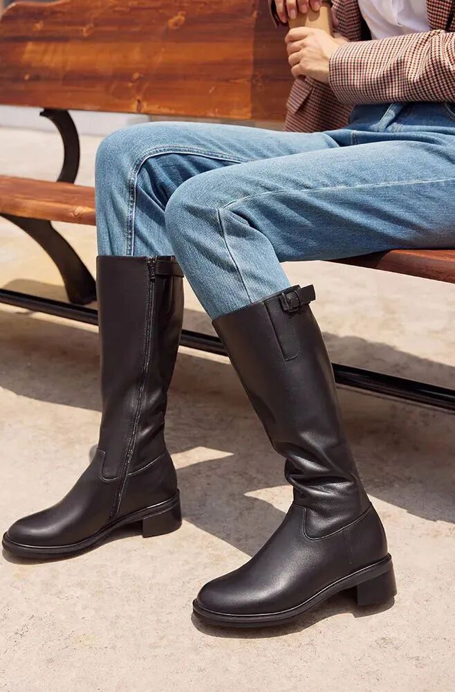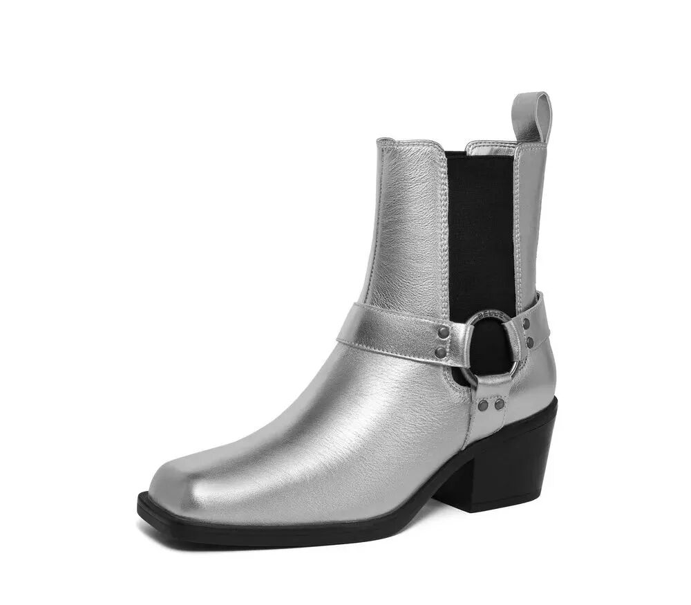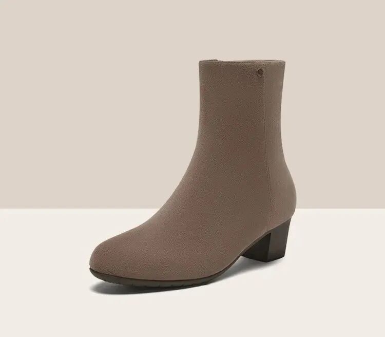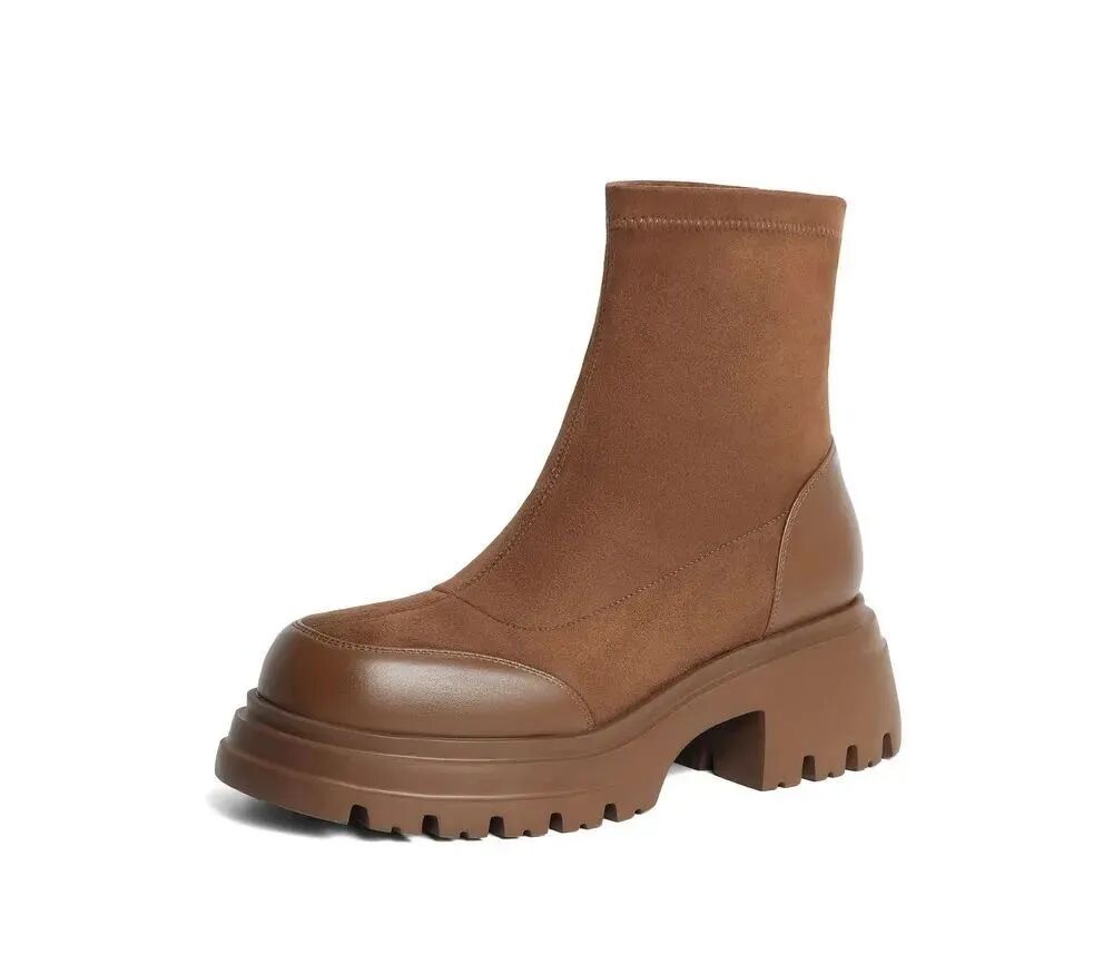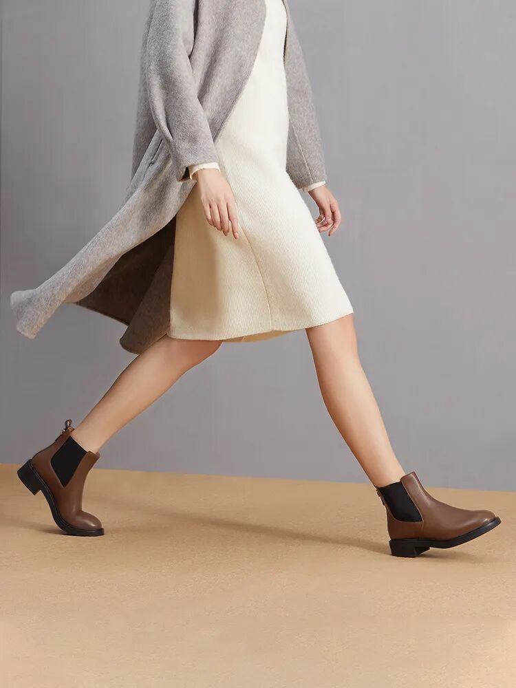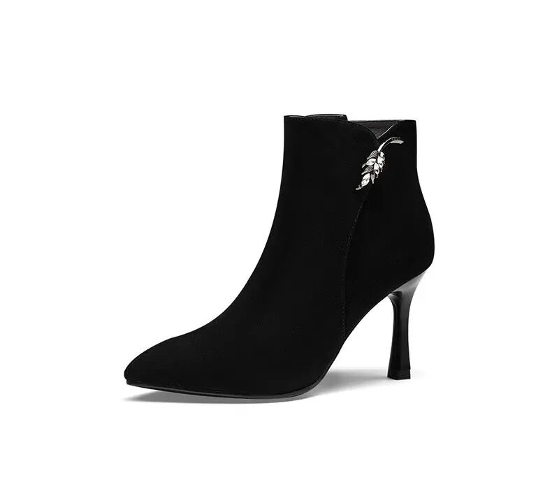 ▲牛皮粗跟高跟靴弹力短靴¥1799,折后价¥899