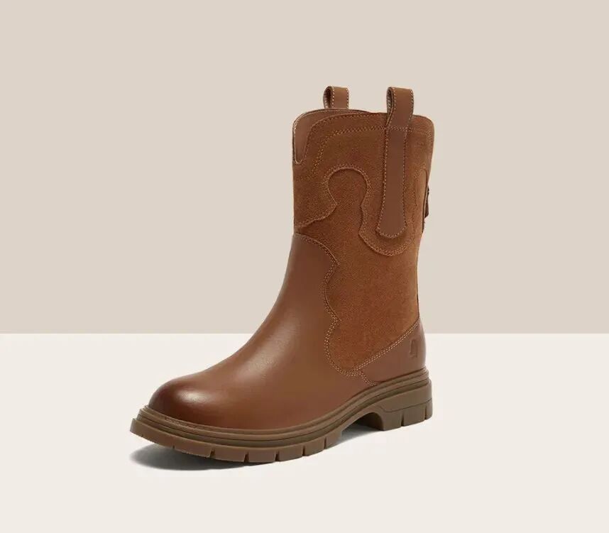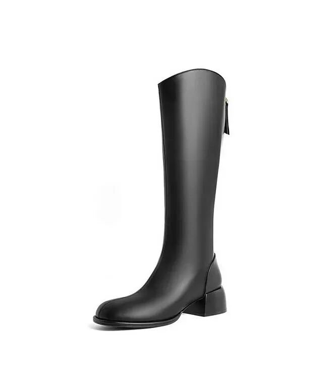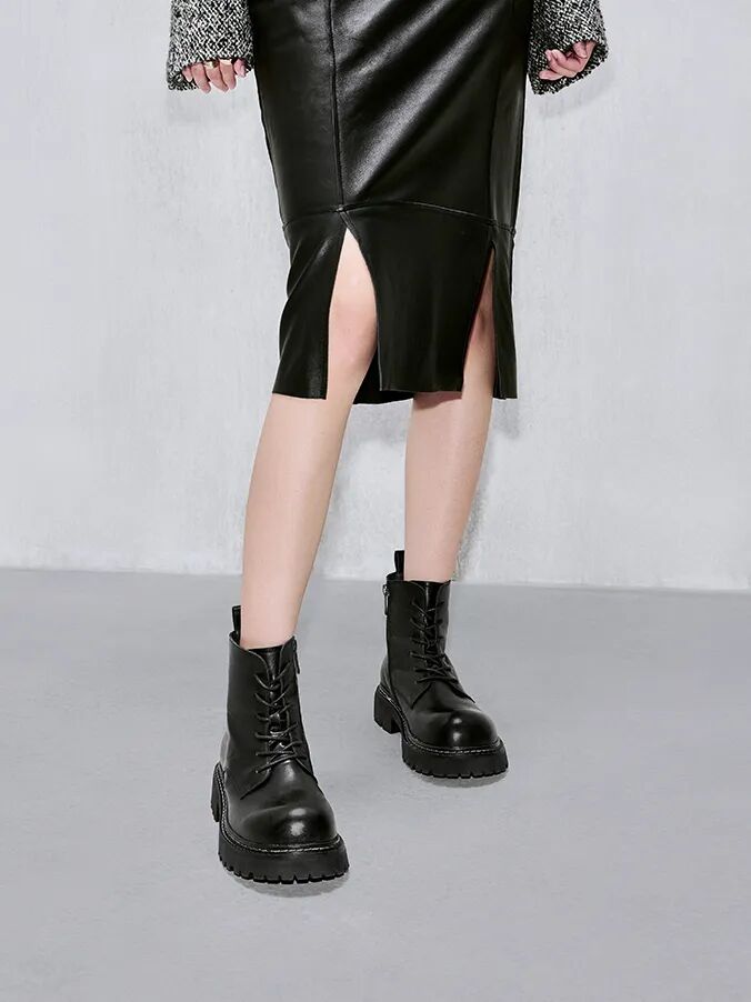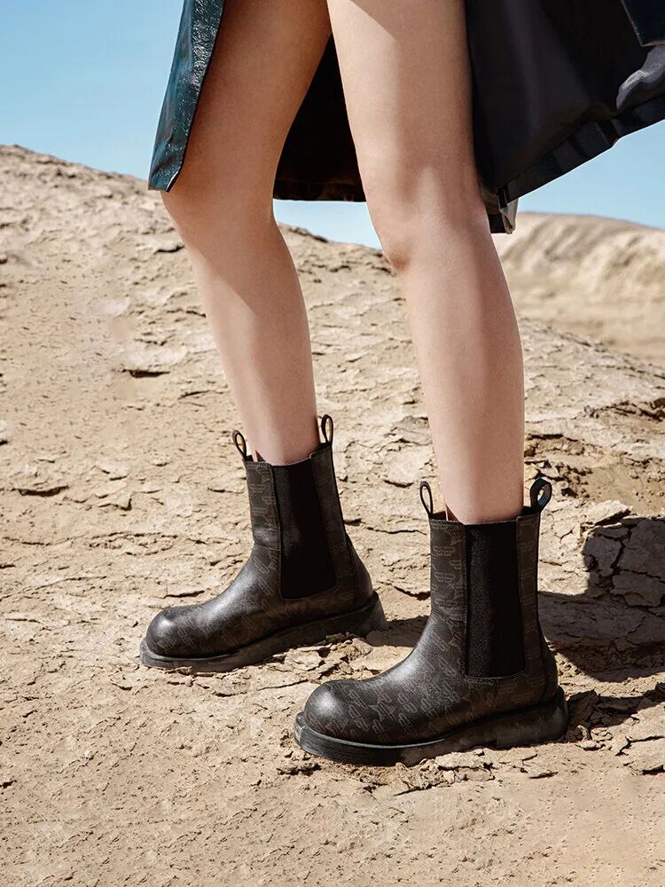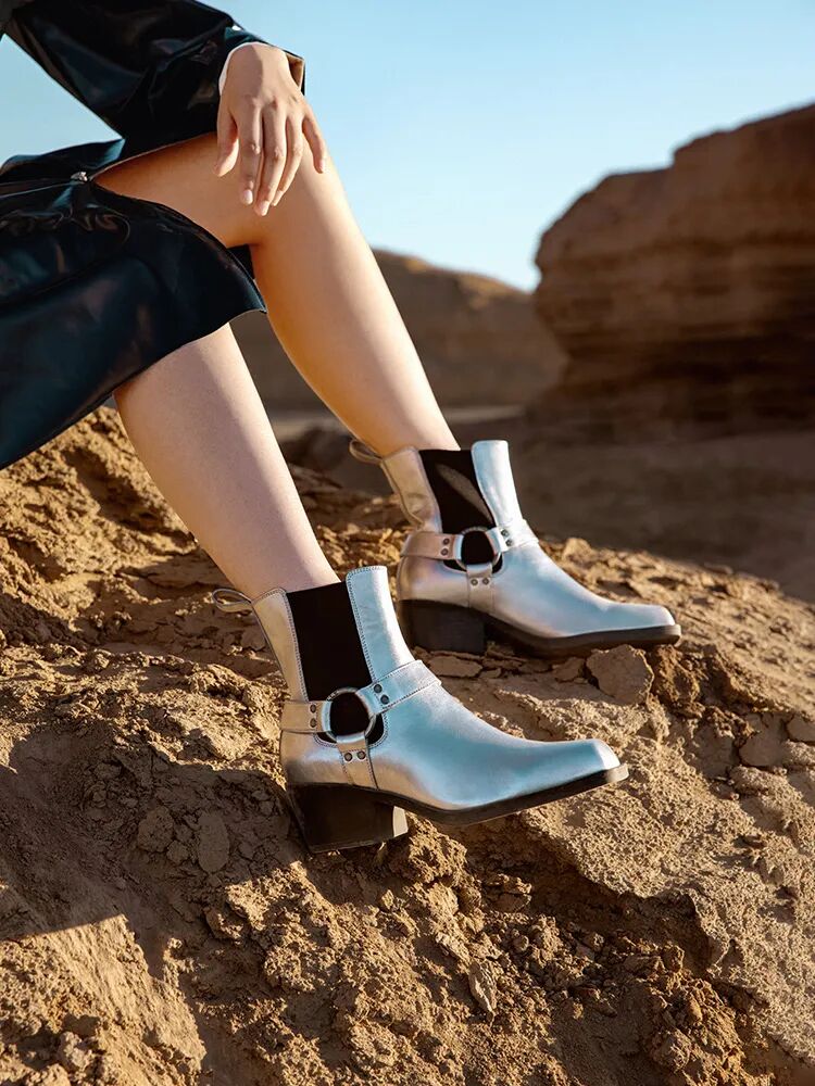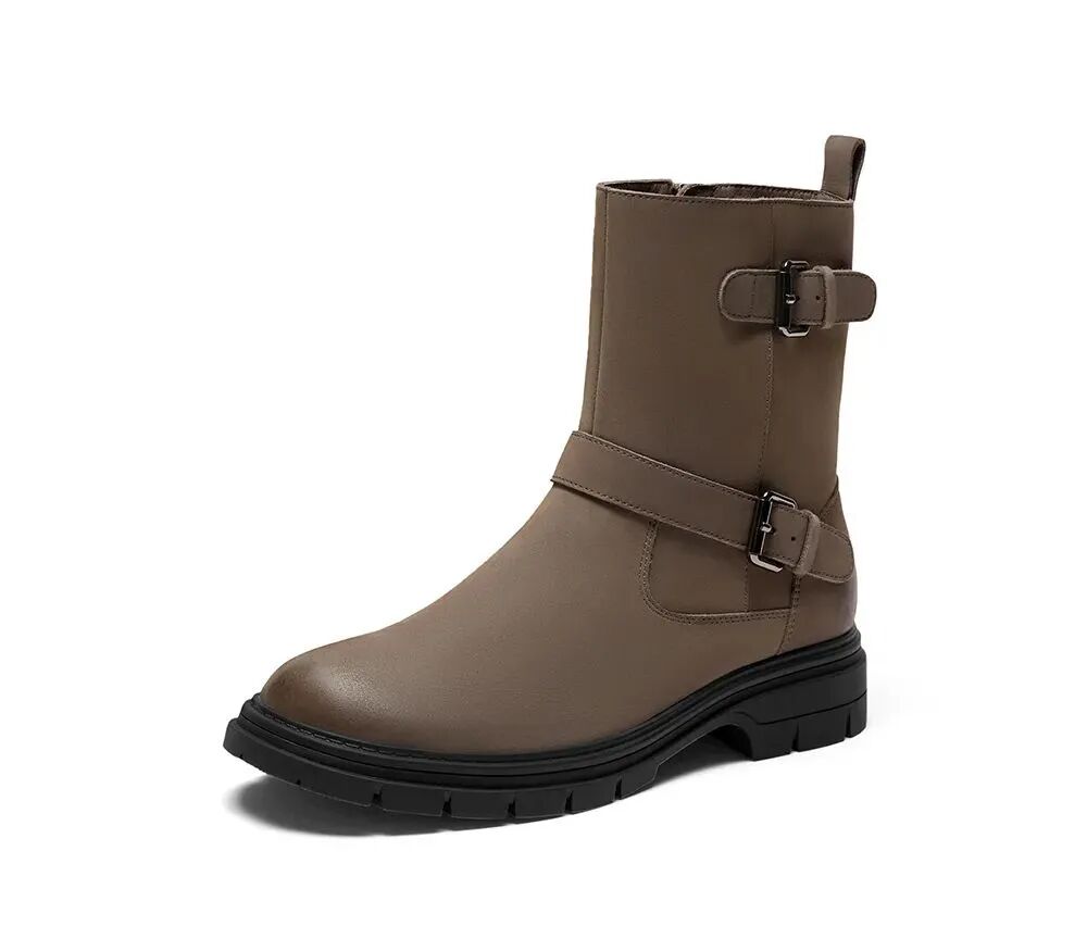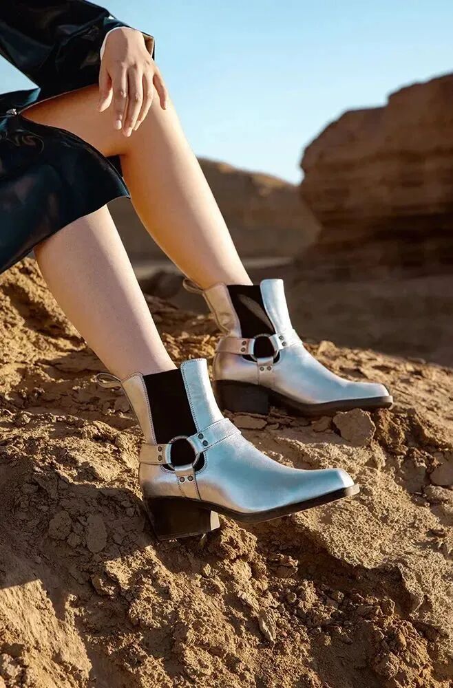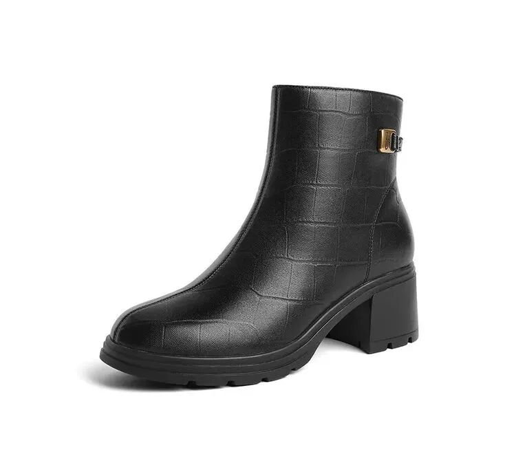 ▲牛皮粗跟高跟靴弹力短靴¥1799,折后价¥899