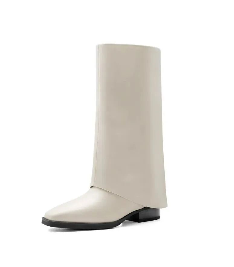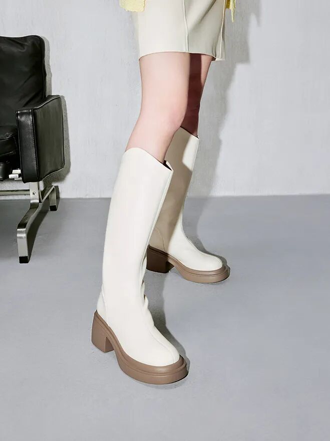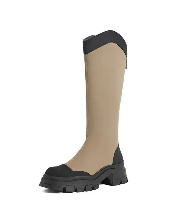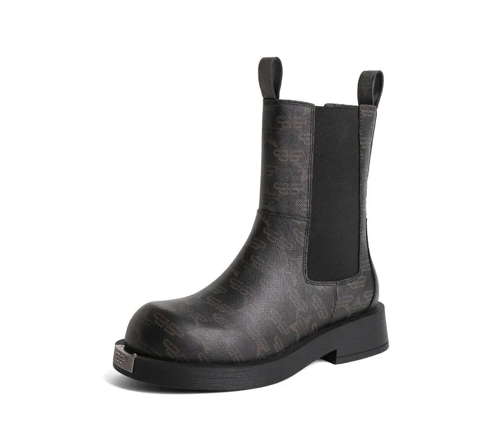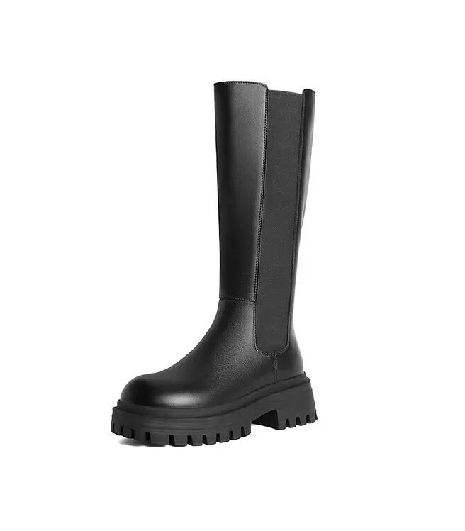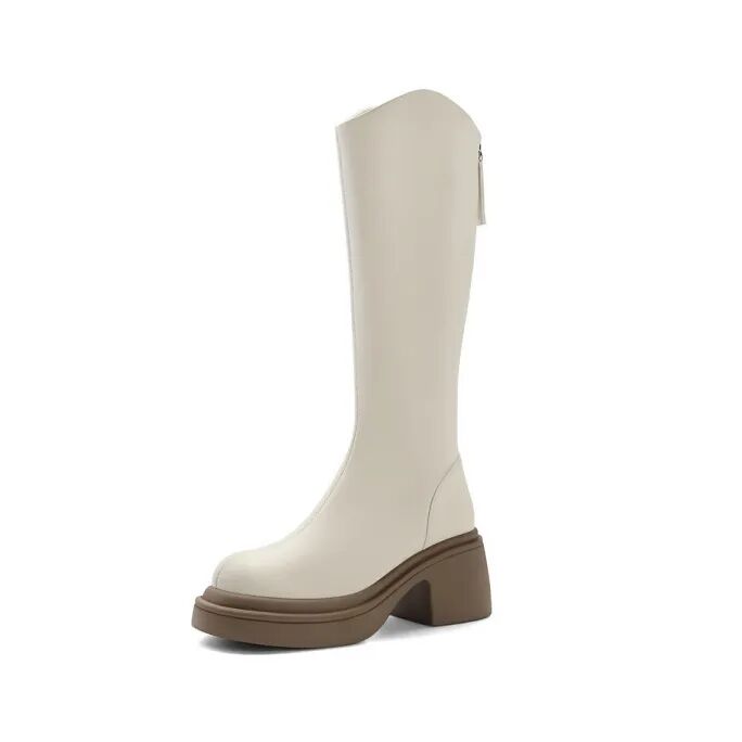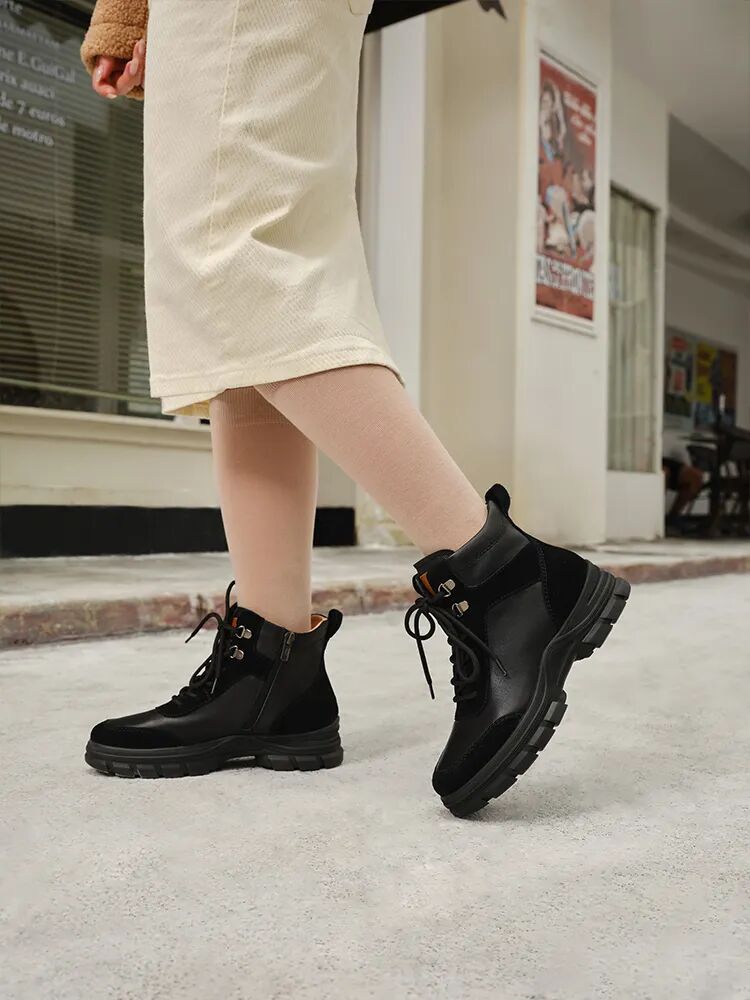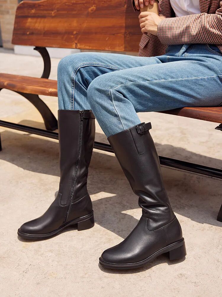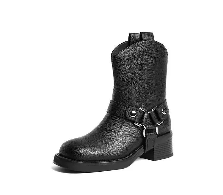▲牛皮粗跟高跟靴弹力短靴¥1799,折后价¥899