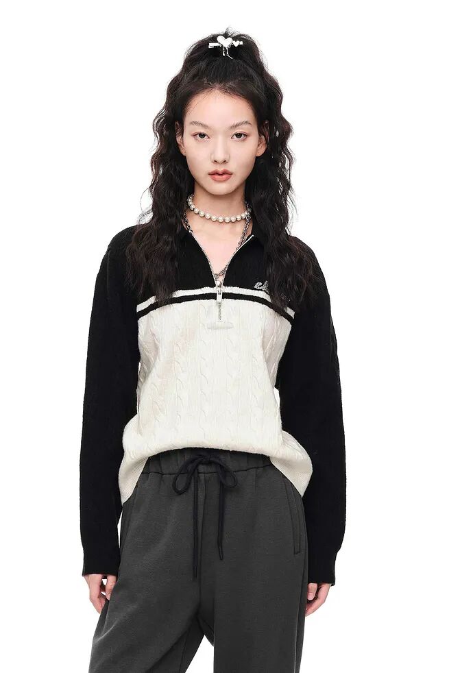 ▲提花撞色混纺拼接针织衫¥1290,折后价¥1161【点击购买】
