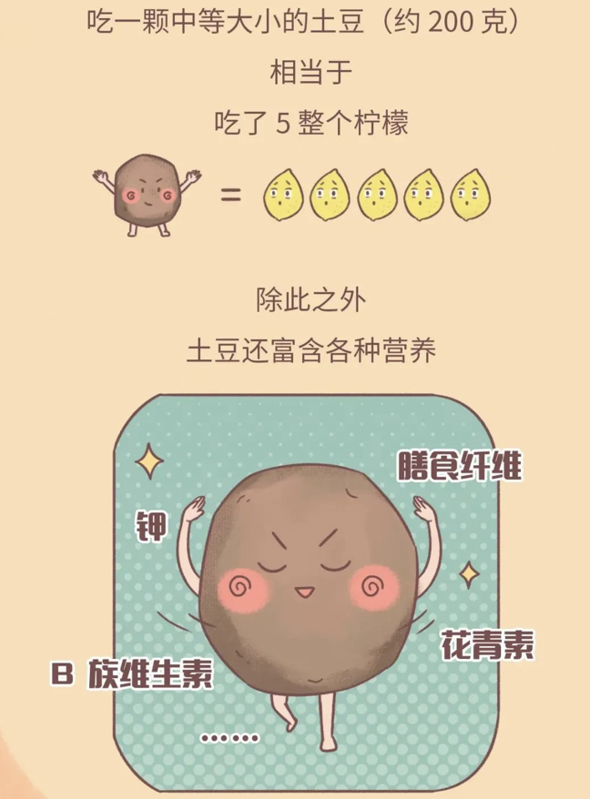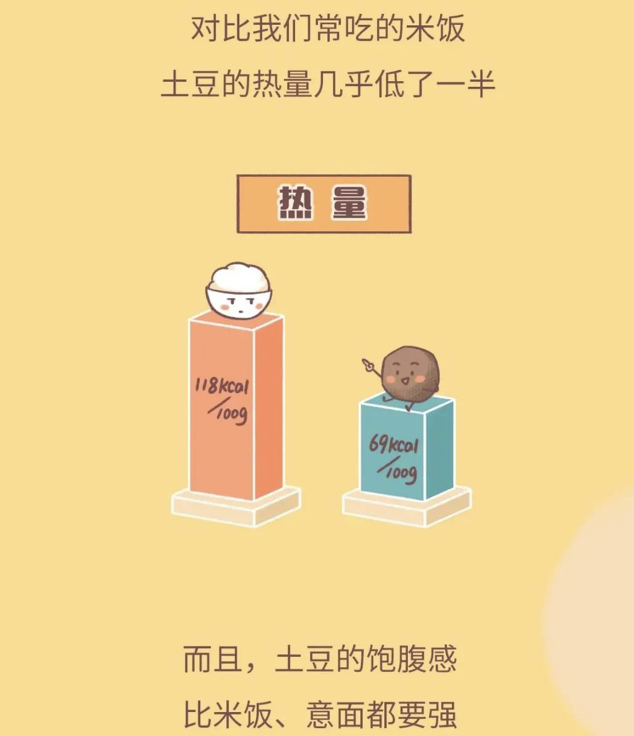 饱腹感强,在同样淀粉量的情况下,比白米白面含有更多的维生素,钾含量高,而且能提供粮食当中没有的维生素C。