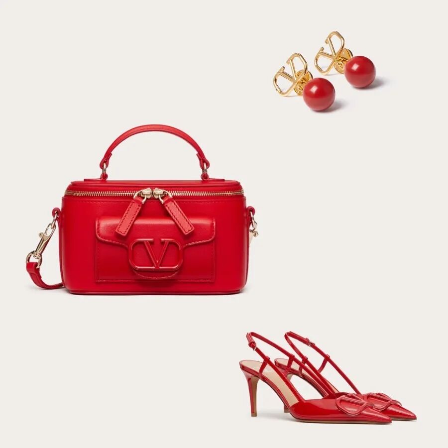 搭配红色迷你LOCÒ小牛皮盒子包