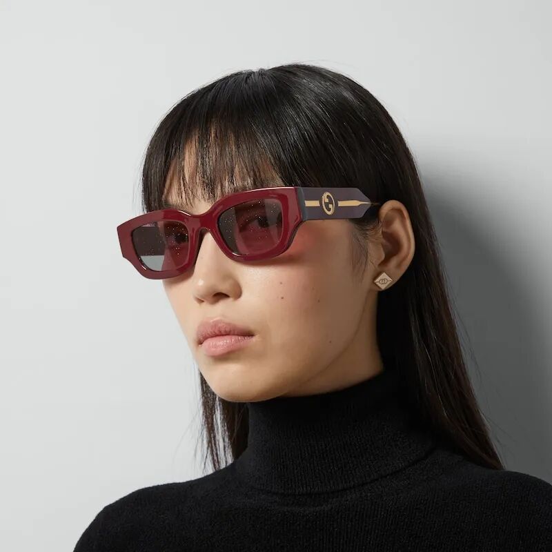 这款时尚长方形镜框太阳镜配有闪亮镜片