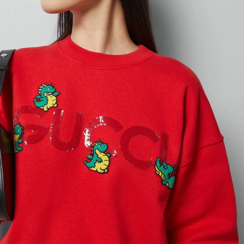 饰有Gucci亮片刺绣和龙宝宝刺绣贴饰