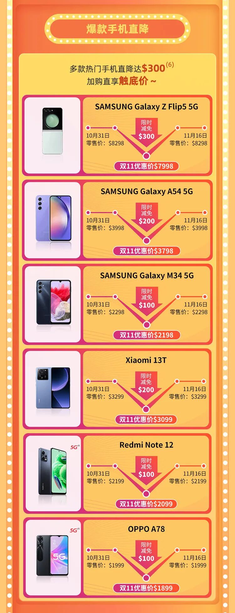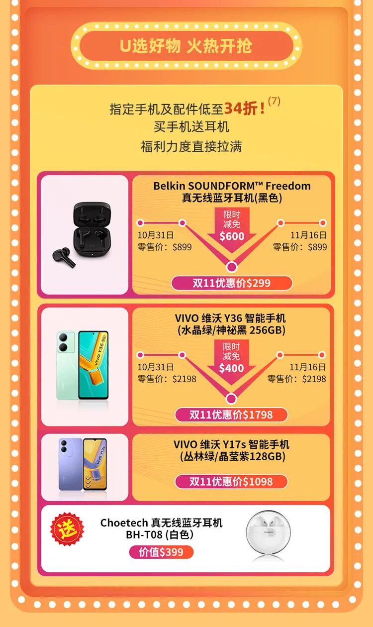 (6)双11优惠期间,客户经网上商城或MyCUniq APP选购指定手机享不同额度的减免优惠。手机数量有限,先到先得,售完即止。购买手机受相关条款及细则约束,详情请参阅个别手机购买页面。除特别注明外,手机优惠不可与其他折扣、优惠、推广或礼券同时使用。