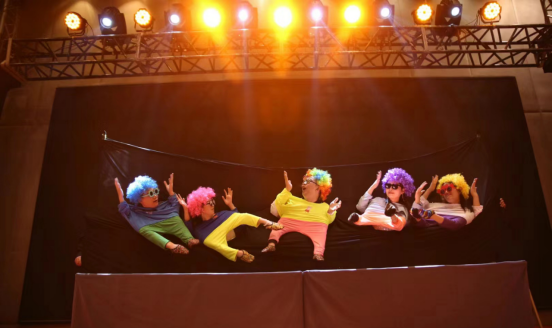这个节目需要的道具非常简单,一块幕布,几个头套和几件小人衣服就可以轻松搞定。跳舞的时候也不用考虑齐不齐,跳错也不怕,因为图的就是一个乐呵。