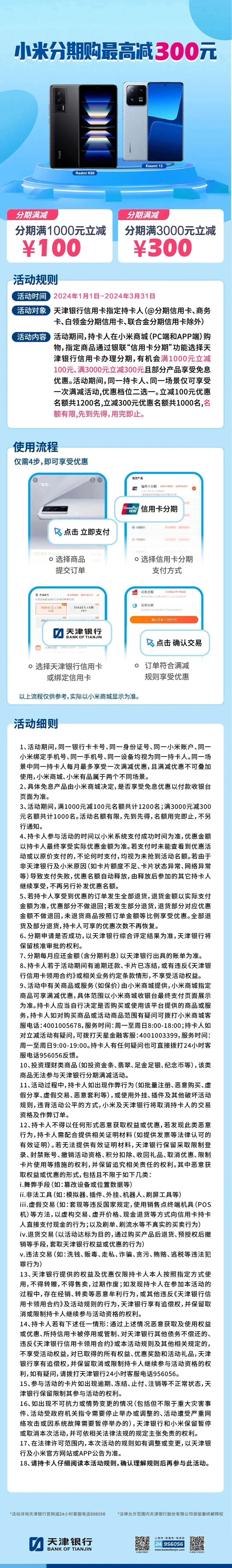 ※ 活动细则详见天津银行官网或拨打我行24小时客户服务热线956056。