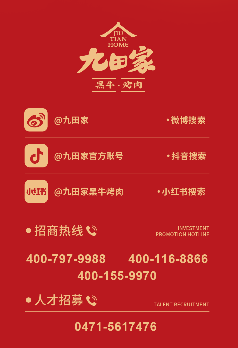 文章内容来源于公众号:九田家黑牛烤肉官方号,点此可查看原文,内容版权归相关企业所有,本网站仅供交流学习。若涉及版权问题或存在侵权情况,请及时与我们联系,我们将第一时间进行删除处理。