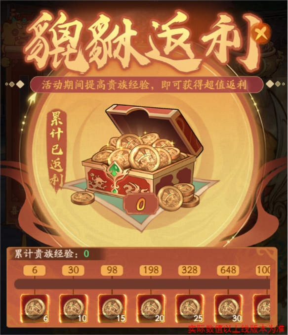 活动期间累计获得一定数量的贵族经验,还将获得通宝奖励。