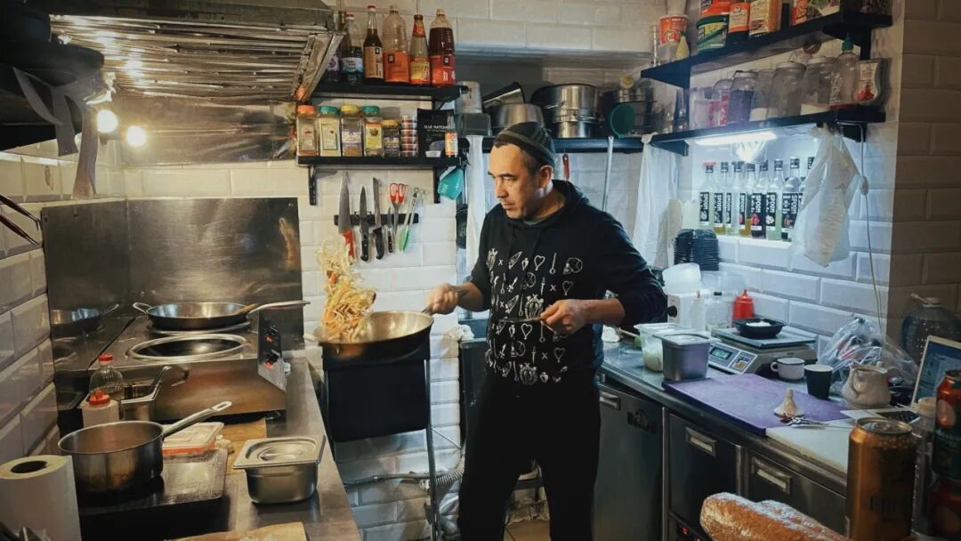 捷里的物资匮乏,我们把从莫斯科背来的泡面、沙拉、牛肉卷放进塑料袋,写好房间号,放在青旅的共享冰箱上层。