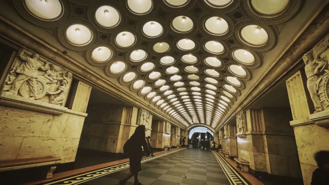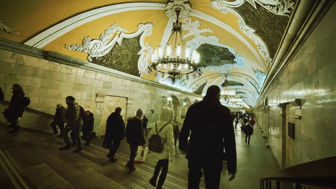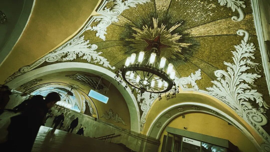 刚到莫斯科,挖得极深的地铁就迎面给出了震慑,75°角的长滚梯,需要反复确认是否站稳。列车从5号线的月台进站,扑来暖风,是熟悉的“北京1、2号线”的感觉,有历史的锈味。