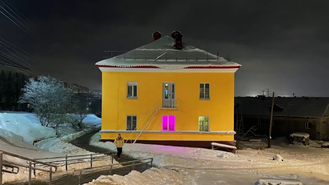 当地日照时间短,人们会在阳台打光,给植物特殊照护,全城底色是低饱和与冷调的摩尔曼斯克,楼群见一个又一个的粉红色窗口,像漂浮在这座城的摩斯码。但个体的内心活动又如何通过语言传达给对方,并降低破译的难度呢?