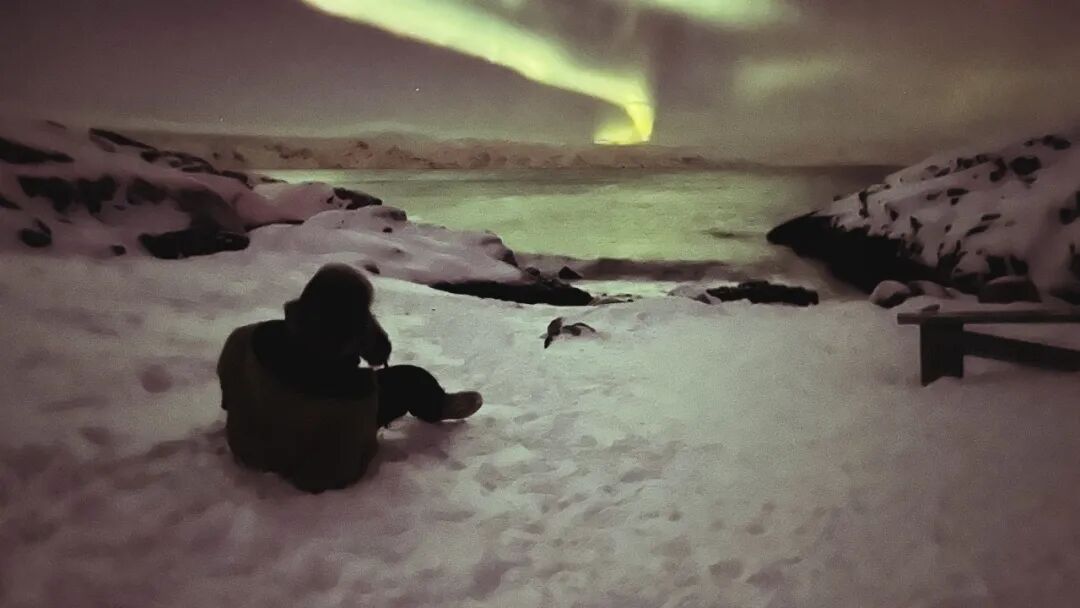 他穿错鞋,把登山靴拿成沙漠靴,鞋底平坦,宽大,像船,曾让他在塔克拉玛干悬浮于细沙之上,也让他在北极圈的每一步都会滑行。鞋底冻得生硬,他说小腿酸痛,尝试碎步跳跃,但多次栽倒。“你这样会更累。”他继续跳,像是通过跳跃把破晓拱出极夜,也像把对我积攒的情绪拱出去。
