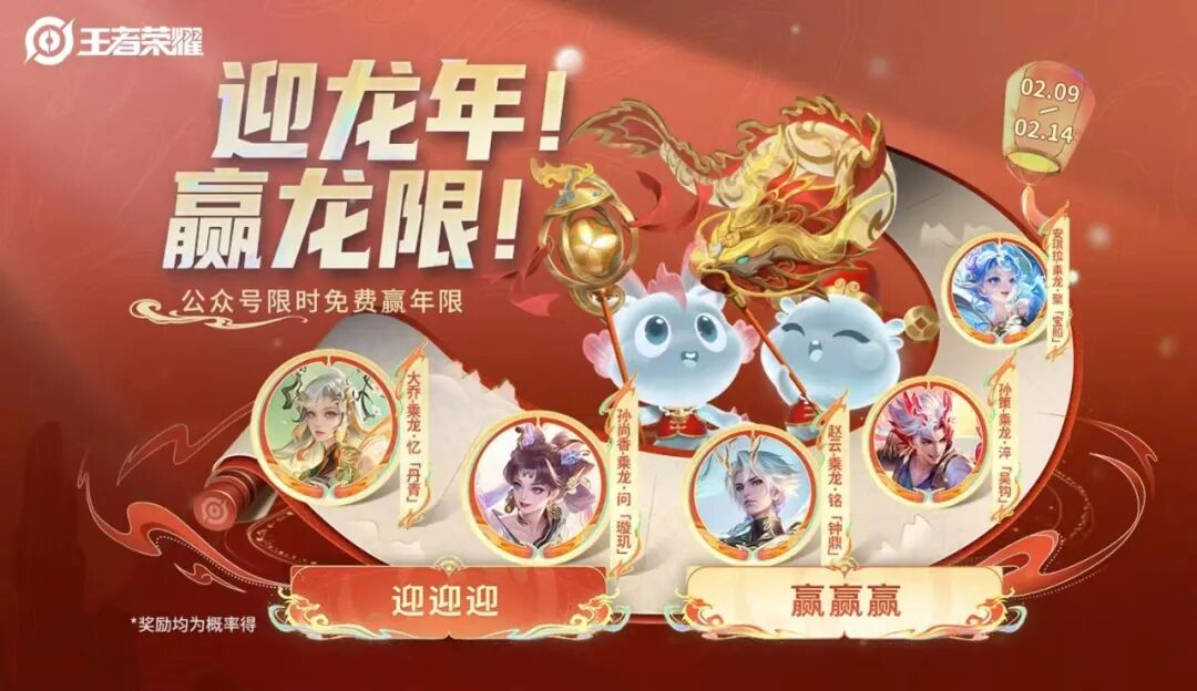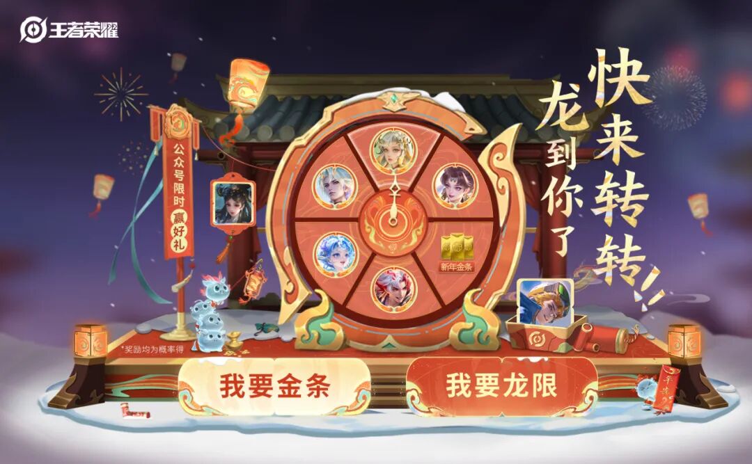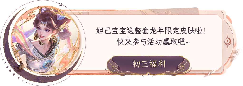 妲己宝宝将抽送全套龙年限定皮肤、新年金条、大乔-白蛇、哪吒-雪上飞焰等超多好礼!