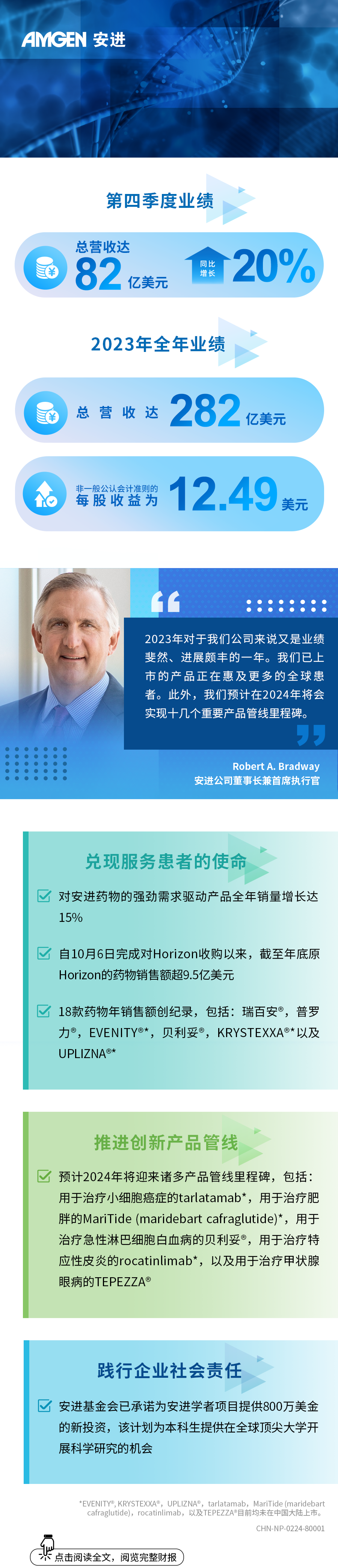 安进2023年Q4强劲增长,全年财报表现亮眼