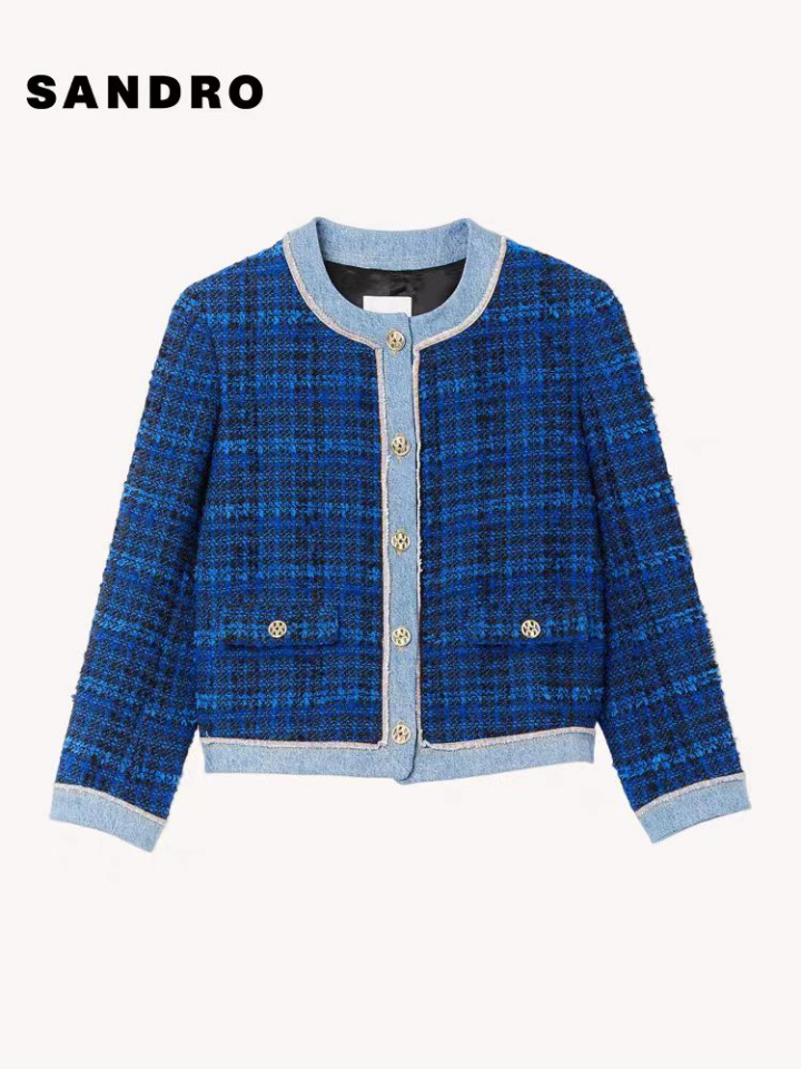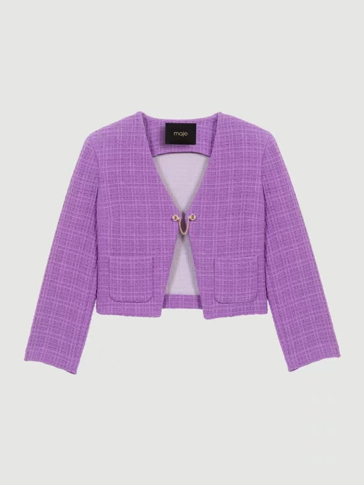 紫色短款花呢外套上衣